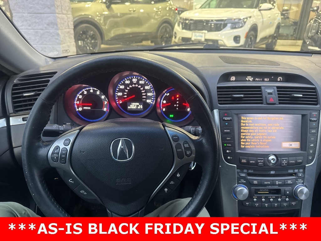 This TL is well equipped with Acura/ELS Prem AM/FM w/XM Satellite Radio, Heated Front Bucket Seats, High intensity discharge headlights: Bi-Xenon, Power moonroof, 17" Aluminum Alloy Wheels, 4-Wheel Disc Brakes, 8 Speakers, ABS brakes, Air Conditioning, Alloy wheels, AM/FM radio: XM, Auto-dimming Rear-View mirror, Automatic temperature control, Brake assist, Bumpers: body-color, Cassette, CD player, Driver door bin, Driver vanity mirror, Dual front impact airbags, Dual front side impact airbags, DVD-Audio, Electronic Stability Control, Four wheel independent suspension, Front anti-roll bar, Front Bucket Seats, Front Center Armrest w/Storage, Front dual zone A/C, Front fog lights, Front reading lights, Garage door transmitter: HomeLink, Heated door mirrors, Heated front seats, Illuminated entry, Leather Shift Knob, Low tire pressure warning, Memory seat, Occupant sensing airbag, Outside temperature display, Overhead airbag, Overhead console, Panic alarm, Passenger door bin, Passenger vanity mirror, Perforated Leather Seat Trim, Power door mirrors, Power driver seat, Power passenger seat, Power steering, Power windows, Premium audio system: Acura/ELS, Rear anti-roll bar, Rear reading lights, Rear seat center armrest, Rear window defroster, Remote keyless entry, Security system, Speed control, Speed-sensing steering, Speed-Sensitive Wipers, Steering wheel mounted audio controls, Tachometer, Telescoping steering wheel, Tilt steering wheel, Traction control, Trip computer, Turn signal indicator mirrors, Variably intermittent wipers, and XM Satellite Radio.
