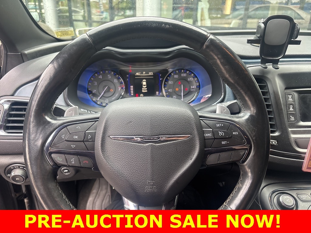 2015 Chrysler 200 S Beautifully finished in Black Clearcoat with Black Cloth interior. 3.6L V6 24V VVT 4D Sedan FWD 9-Speed Automatic Black Cloth, 4-Wheel Disc Brakes, 6 Speakers, ABS brakes, Accessory Switch Bank, Air Conditioning, Air Conditioning ATC w/Dual Zone Control, Alloy wheels, AM/FM radio: SiriusXM, Anti-whiplash front head restraints, Brake assist, Bumpers: body-color, Cloth w/Leather Trimmed Sport Seats, Comfort Group, Compass, Delay-off headlights, Driver door bin, Driver vanity mirror, Dual front impact airbags, Dual front side impact airbags, Electronic Stability Control, Four wheel independent suspension, Front anti-roll bar, Front Bucket Seats, Front Center Armrest, Front fog lights, Front reading lights, Fully automatic headlights, Heated door mirrors, Heated Front Seats, Heated Steering Wheel, Humidity Sensor, Illuminated entry, Integrated Voice Command w/Bluetooth, Knee airbag, Low tire pressure warning, Occupant sensing airbag, Outside temperature display, Overhead airbag, Overhead console, Panic alarm, ParkView Rear Back-Up Camera, Passenger door bin, Passenger vanity mirror, Power door mirrors, Power driver seat, Power steering, Power windows, Quick Order Package 26L, Radio data system, Radio: Uconnect 5.0 AM/FM/BT, Rear A/C & Heat Ducts, Rear anti-roll bar, Rear seat center armrest, Rear window defroster, Rear-View Auto-Dimming Mirror w/Microphone, Remote keyless entry, Remote Start System, Security system, SIRIUSXM Satellite Radio, Speed control, Speed-sensing steering, Speed-Sensitive Wipers, Split folding rear seat, Steering wheel mounted audio controls, Sun Visors w/Illuminated Vanity Mirrors, Tachometer, Telescoping steering wheel, Tilt steering wheel, Traction control, Trip computer, Uconnect Voice Command w/Bluetooth, Variably intermittent wipers, Wheels: 18" x 8.0" Satin Carbon Aluminum, Black Cloth. Priced below KBB Fair Purchase Price! 19/32 City/Highway MPG