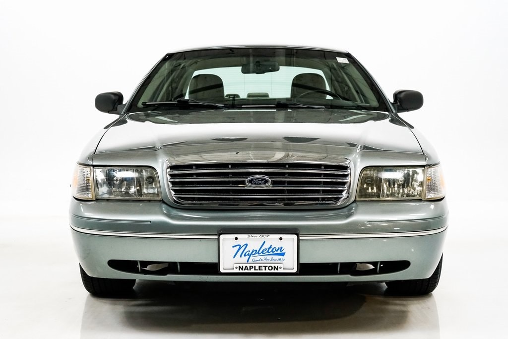 This Crown Victoria is well equipped with 16" 9-Spoke Alloy Wheels, 4 Speakers, 4-Wheel Disc Brakes, 6-Passenger Luxury Cloth Split Bench Seats, ABS brakes, Air Conditioning, Alloy wheels, AM/FM radio, Automatic temperature control, Bodyside moldings, Bumpers: body-color, CD player, Compass, Delay-off headlights, Driver door bin, Driver vanity mirror, Dual front impact airbags, Front anti-roll bar, Front reading lights, Front wheel independent suspension, Fully automatic headlights, Illuminated entry, Occupant sensing airbag, Outside temperature display, Overhead console, Panic alarm, Passenger door bin, Passenger vanity mirror, Power door mirrors, Power driver seat, Power steering, Power windows, Rear reading lights, Rear seat center armrest, Rear window defroster, Remote keyless entry, Speed control, Speed-sensing steering, Tilt steering wheel, Trip computer, Variably intermittent wipers, and Voltmeter.