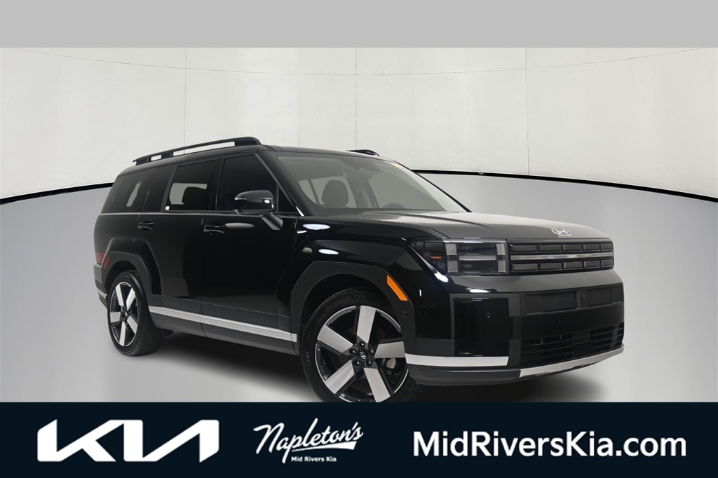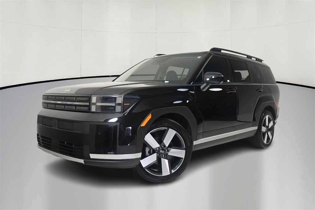 This Santa Fe is well equipped with Option Group 01, Black Leather, 12 Speakers, 3rd row seats: bench, 4-Wheel Disc Brakes, ABS brakes, Air Conditioning, Alloy wheels, AM/FM radio: SiriusXM, Apple CarPlay & Android Auto, Auto High-beam Headlights, Auto-dimming Rear-View mirror, Automatic temperature control, Axle Ratio: 3.316, Brake assist, Bumpers: body-color, Carpeted Floor Mats, Delay-off headlights, Driver door bin, Driver vanity mirror, Dual front impact airbags, Dual front side impact airbags, Electronic Stability Control, Emergency communication system, Exterior Parking Camera Rear, First Aid Kit, Four wheel independent suspension, Front anti-roll bar, Front Bucket Seats, Front Center Armrest, Front dual zone A/C, Front reading lights, Fully automatic headlights, Garage door transmitter: HomeLink, Heated & Ventilated Front Bucket Seats, Heated door mirrors, Heated front seats, Heated rear seats, Heated steering wheel, Illuminated entry, Knee airbag, Leather Seat Trim, Leather steering wheel, Low tire pressure warning, Memory seat, Mudguards, Navigation System, Occupant sensing airbag, Outside temperature display, Overhead airbag, Overhead console, Panic alarm, Passenger door bin, Passenger vanity mirror, Power door mirrors, Power driver seat, Power Liftgate, Power moonroof, Power passenger seat, Power steering, Power windows, Radio: AM/FM/HD Bose Premium Audio System, Rain sensing wipers, Rear anti-roll bar, Rear seat center armrest, Rear side impact airbag, Rear window defroster, Rear window wiper, Remote keyless entry, Security system, Speed control, Speed-sensing steering, Split folding rear seat, Spoiler, Steering wheel mounted audio controls, Tachometer, Telescoping steering wheel, Tilt steering wheel, Traction control, Trip computer, Turn signal indicator mirrors, Variably intermittent wipers, Ventilated front seats, Wheel Locks, and Wheels: 20" x 8.5J Alloy.