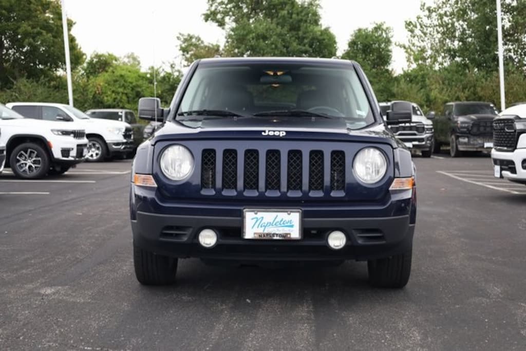 This Patriot is well equipped with Quick Order Package 24G High Altitude Ed. (Retail) (Power 6-Way Driver Seat, Power Express Open/Close Sunroof, and Remote Start System), 17" x 6.5" Aluminum Wheels, 4 Speakers, 4.12 Axle Ratio, ABS brakes, Air Conditioning, Alloy wheels, AM/FM radio, Anti-whiplash front head restraints, Audio Jack Input for Mobile Devices, Brake assist, Bumpers: body-color, CD player, Driver door bin, Driver vanity mirror, Dual front impact airbags, Dual front side impact airbags, Electronic Stability Control, Four wheel independent suspension, Front anti-roll bar, Front Bucket Seats, Front Center Armrest w/Storage, Front fog lights, Front reading lights, Heated door mirrors, Heated front seats, Illuminated entry, Low tire pressure warning, MP3 decoder, Occupant sensing airbag, Outside temperature display, Overhead airbag, Panic alarm, Passenger door bin, Passenger vanity mirror, Power door mirrors, Power steering, Power windows, Premium Cloth Bucket Seats, Radio: Uconnect 130 AM/FM/CD/MP3, Rear anti-roll bar, Rear window defroster, Rear window wiper, Remote keyless entry, Roof rack: rails only, Speed control, Split folding rear seat, Steering wheel mounted audio controls, Tachometer, Tilt steering wheel, Traction control, and Variably intermittent wipers.