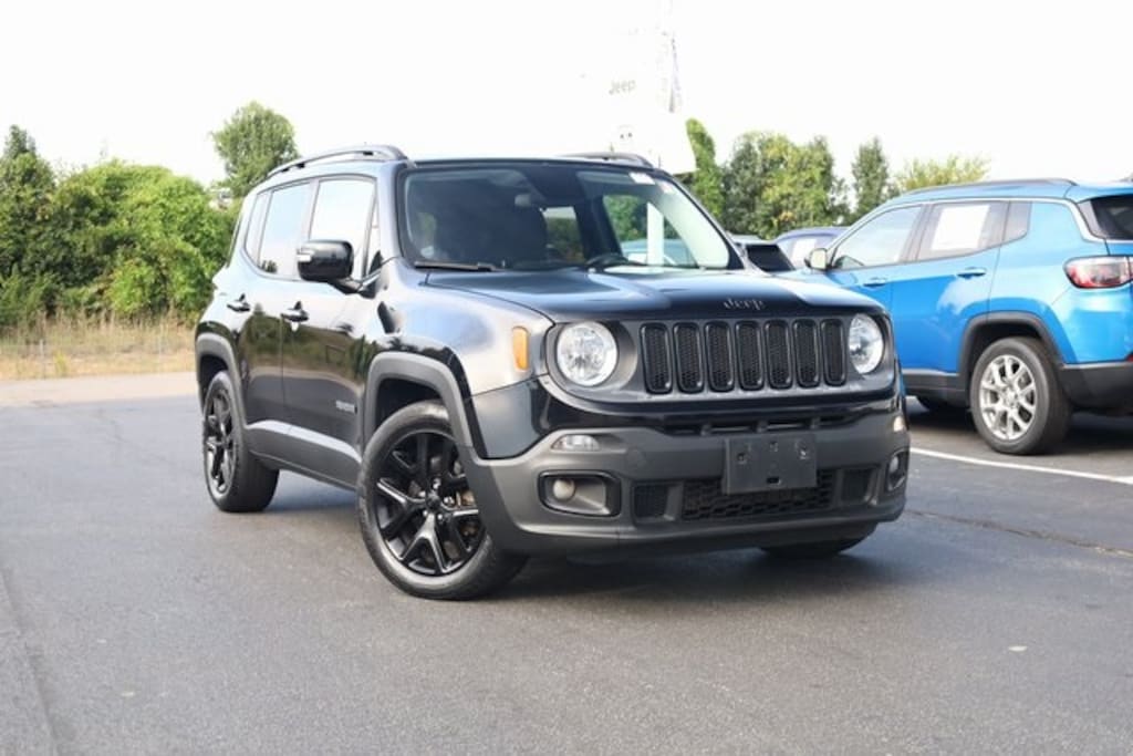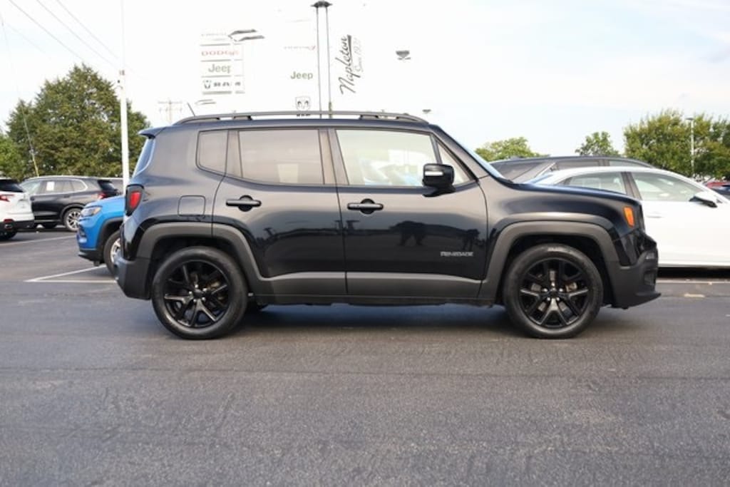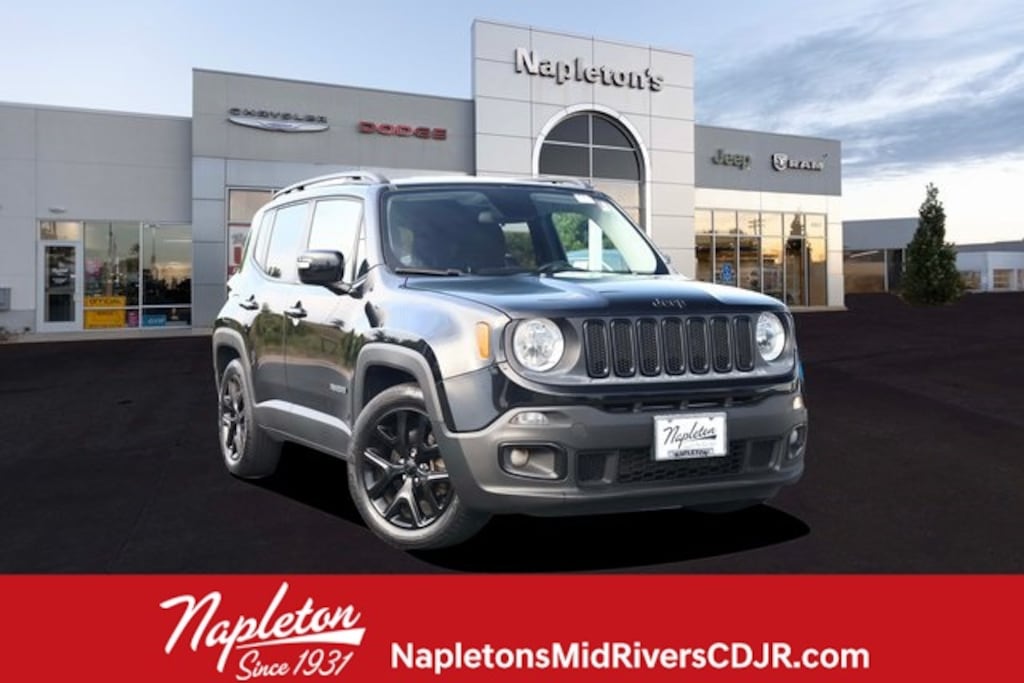 This Renegade is well equipped with Altitude Package, Passive Entry Remote Start Package (Passive Entry/Keyless Go), Quick Order Package 27L Altitude (Black Day Light Opening Moldings, Deluxe Cloth High-Back Bucket Seats, Exterior Mirrors w/Supplemental Signals, Gloss Black Badging, Gloss Black Fascia Applique, Gloss Black Instrument Panel Bezels, Vinyl Door Trim Panel, and Wheels: 18" x 8.0" Gloss Black), 16" x 6.5" Aluminum Wheels, 4-Wheel Disc Brakes, 6 Speakers, ABS brakes, Air Conditioning, Alloy wheels, AM/FM radio: SiriusXM, Anti-whiplash front head restraints, Brake assist, Cloth Low-Back Bucket Seats, Compass, Delay-off headlights, Driver door bin, Driver vanity mirror, Dual front impact airbags, Dual front side impact airbags, Electronic Stability Control, Four wheel independent suspension, Front anti-roll bar, Front Bucket Seats, Front Center Armrest, Front fog lights, Front reading lights, Fully automatic headlights, Heated door mirrors, Illuminated entry, Knee airbag, Leather steering wheel, Low tire pressure warning, Manufacturer's Statement of Origin, Normal Duty Suspension, Occupant sensing airbag, Outside temperature display, Overhead airbag, Overhead console, Panic alarm, ParkView Rear Back-Up Camera, Passenger door bin, Passenger vanity mirror, Power door mirrors, Power steering, Power windows, Radio data system, Radio: Uconnect 3 w/5" Display, Rear anti-roll bar, Rear window defroster, Rear window wiper, Remote keyless entry, Roof rack: rails only, Speed control, Split folding rear seat, Spoiler, Steering wheel mounted audio controls, Tachometer, Telescoping steering wheel, Tilt steering wheel, Traction control, Trip computer, Variably intermittent wipers, and Voltmeter.