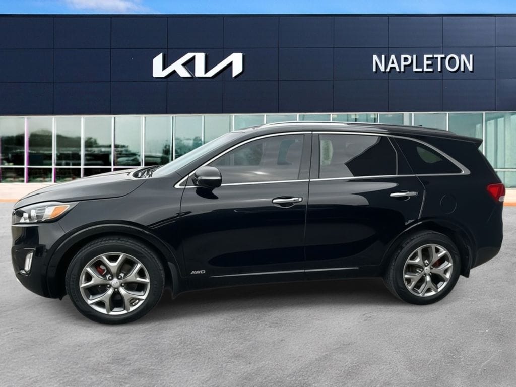 This Sorento is well equipped with Sorento SX, 4D Sport Utility, 3.3L DOHC, 6-Speed Automatic with Sportmatic, AWD, Ebony Black, Satin Black Leather, Navigation System, Power Liftgate, Power moonroof, 10 Speakers, 3.32 Axle Ratio, 3rd row seats: split-bench, 4-Wheel Disc Brakes, ABS brakes, Air Conditioning, Alloy wheels, AM/FM radio: SiriusXM, Auto-dimming Rear-View mirror, Automatic temperature control, Brake assist, Bumpers: body-color, CD player, Delay-off headlights, Driver door bin, Driver vanity mirror, Dual front impact airbags, Dual front side impact airbags, Electronic Stability Control, Exterior Parking Camera Rear, Four wheel independent suspension, Front anti-roll bar, Front Bucket Seats, Front Center Armrest, Front dual zone A/C, Front fog lights, Front reading lights, Fully automatic headlights, Heated door mirrors, Heated Front Bucket Seats, Heated front seats, Illuminated entry, Low tire pressure warning, Memory seat, Occupant sensing airbag, Outside temperature display, Overhead airbag, Overhead console, Panic alarm, Passenger door bin, Passenger vanity mirror, Power door mirrors, Power driver seat, Power passenger seat, Power steering, Power windows, Premium Leather Seat Trim, Radio: UVO eServices with Premium Navigation, Rear air conditioning, Rear anti-roll bar, Rear Parking Sensors, Rear reading lights, Rear seat center armrest, Rear window defroster, Rear window wiper, Remote keyless entry, Remote Start (Push Button), Roof rack: rails only, Security system, Speed control, Speed-sensing steering, Split folding rear seat, Spoiler, Steering wheel mounted audio controls, Tachometer, Telescoping steering wheel, Tilt steering wheel, Traction control, Trip computer, Turn signal indicator mirrors, Variably intermittent wipers, Ventilated front seats, and Wheels: 19" x 7.5 Spoke Cap Alloy.