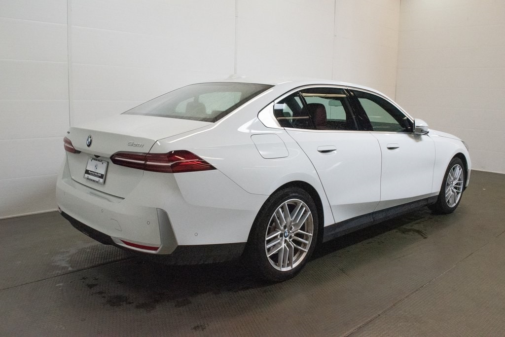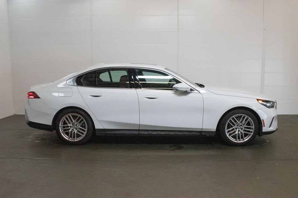 This 5 Series is well equipped with Connected Package Pro, Premium Package (BMW Curved Display w/HUD, Full LED Lights w/Cornering Lights, Heated Steering Wheel, Interior Camera, Natural Interaction, Parking Assistant Plus, Premium Content 1, and Remote Engine Start), Navigation, Navigation System, 12 Speakers, 4-Wheel Disc Brakes, ABS brakes, Air Conditioning, Alloy wheels, AM/FM radio: SiriusXM, Apple CarPlay & Android Auto Compatibility, Auto tilt-away steering wheel, Auto-dimming door mirrors, Auto-dimming Rear-View mirror, Automatic temperature control, BMW Assist eCall, BMW TeleServices, Brake assist, Bumpers: body-color, ConnectedDrive Services, Delay-off headlights, Driver door bin, Driver vanity mirror, Dual front impact airbags, Dual front side impact airbags, Electronic Stability Control, Emergency communication system: BMW Assist eCall, Exterior Parking Camera Rear, Four wheel independent suspension, Front anti-roll bar, Front Bucket Seats, Front Center Armrest, Front dual zone A/C, Front reading lights, Fully automatic headlights, Garage door transmitter, Genuine wood dashboard insert, Genuine wood door panel insert, harman/kardon® Logic 7® Digital Surround, harman/kardon® Speakers, Head restraints memory, Heated door mirrors, Heated Front Seats, Heated front seats, Illuminated entry, Leather steering wheel, Low tire pressure warning, Lumbar Support, Memory seat, Occupant sensing airbag, Outside temperature display, Overhead airbag, Panic alarm, Passenger door bin, Passenger vanity mirror, Perforated & Quilted Veganza Upholstery, Personal eSIM 5G, Power adjustable front head restraints, Power door mirrors, Power driver seat, Power Front Seats, Power moonroof, Power passenger seat, Power steering, Power windows, Radio data system, Radio: AM/FM Audio System, Rain sensing wipers, Rear anti-roll bar, Rear reading lights, Rear seat center armrest, Rear window defroster, Remote keyless entry, Security system, SiriusXM Satellite Radio w/1 Year Subscription, Speed control, Speed-sensing steering, Speed-Sensitive Wipers, Split folding rear seat, Sport Seats, Steering wheel memory, Steering wheel mounted audio controls, Tachometer, Telescoping steering wheel, Tilt steering wheel, Traction control, Trip computer, Turn signal indicator mirrors, Variably intermittent wipers, Wheels: 19" x 8.5" Triplex-Spoke Silver, and Wireless Device Charging.