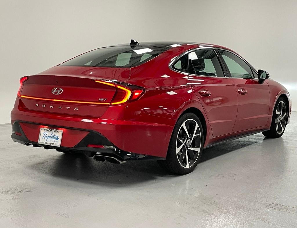 This Sonata is well equipped with Option Group 01, Black Artificial Leather, 12 Speakers, 19" x 8.0J Aluminum Alloy Wheels, 4-Wheel Disc Brakes, ABS brakes, Air Conditioning, Alloy wheels, AM/FM radio: SiriusXM, Apple CarPlay & Android Auto, Auto High-beam Headlights, Auto-dimming Rear-View mirror, Automatic temperature control, Brake assist, Bumpers: body-color, Cargo Net, Carpeted Floor Mats, Delay-off headlights, Driver door bin, Driver vanity mirror, Dual front impact airbags, Dual front side impact airbags, Electronic Stability Control, Emergency communication system: Blue Link Connected Car Service (3-year complimentary subscription), Exterior Parking Camera Rear, First Aid Kit, Four wheel independent suspension, Front anti-roll bar, Front Bucket Seats, Front Center Armrest, Front dual zone A/C, Front reading lights, Fully automatic headlights, Heated door mirrors, Heated Front Bucket Seats, Heated front seats, Illuminated entry, Knee airbag, Leather steering wheel, Leatherette Seating Surfaces, Low tire pressure warning, Navigation System, Occupant sensing airbag, Outside temperature display, Overhead airbag, Overhead console, Panic alarm, Passenger door bin, Passenger vanity mirror, Power door mirrors, Power driver seat, Power moonroof, Power steering, Power windows, Radio data system, Radio: AM/FM/MP3/HD/SiriusXM Display Audio w/Nav, Rear anti-roll bar, Rear seat center armrest, Rear side impact airbag, Rear window defroster, Remote keyless entry, Reversible Cargo Tray, Security system, Speed control, Speed-sensing steering, Speed-Sensitive Wipers, Split folding rear seat, Steering wheel mounted audio controls, Tachometer, Telescoping steering wheel, Tilt steering wheel, Traction control, Trip computer, Turn signal indicator mirrors, Variably intermittent wipers, and Wheel Locks.