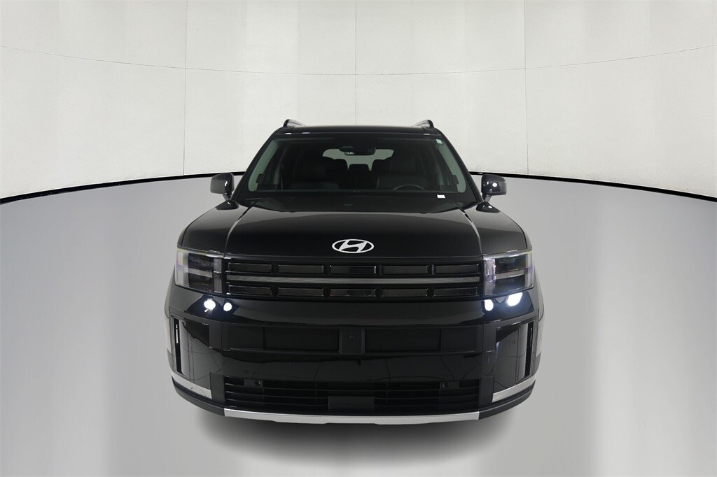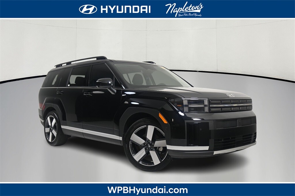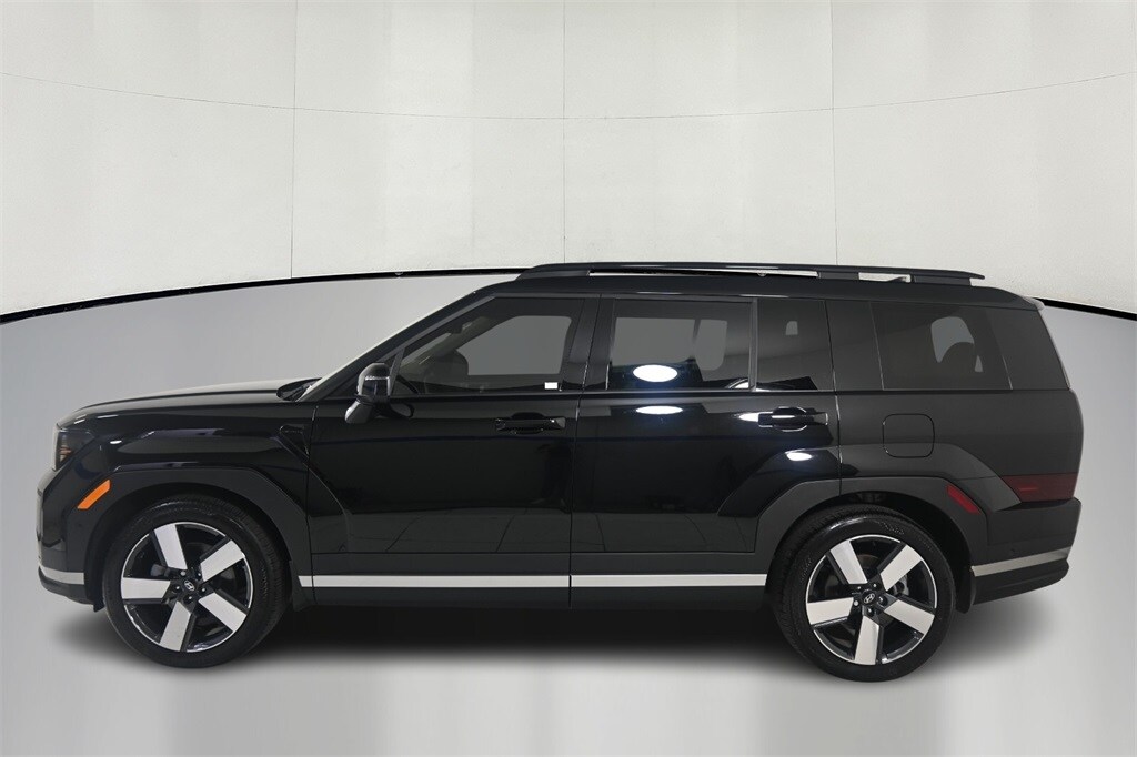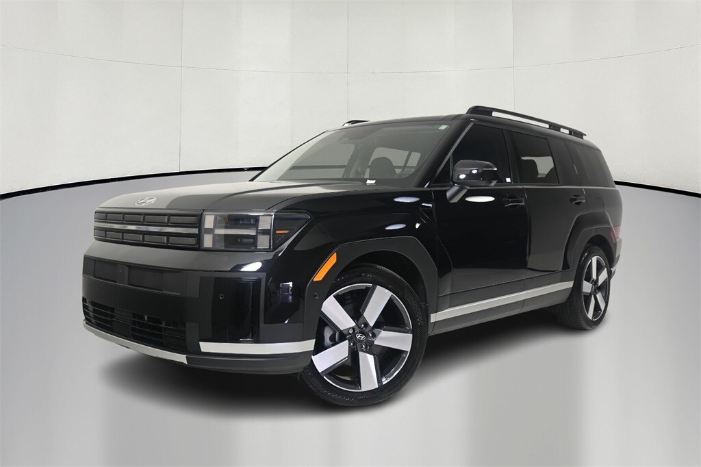 This Santa Fe is well equipped with Option Group 01, Black Leather, 12 Speakers, 3rd row seats: bench, 4-Wheel Disc Brakes, ABS brakes, Air Conditioning, Alloy wheels, AM/FM radio: SiriusXM, Apple CarPlay & Android Auto, Auto High-beam Headlights, Auto-dimming Rear-View mirror, Automatic temperature control, Axle Ratio: 3.316, Brake assist, Bumpers: body-color, Carpeted Floor Mats, Delay-off headlights, Driver door bin, Driver vanity mirror, Dual front impact airbags, Dual front side impact airbags, Electronic Stability Control, Emergency communication system, Exterior Parking Camera Rear, First Aid Kit, Four wheel independent suspension, Front anti-roll bar, Front Bucket Seats, Front Center Armrest, Front dual zone A/C, Front reading lights, Fully automatic headlights, Garage door transmitter: HomeLink, Heated & Ventilated Front Bucket Seats, Heated door mirrors, Heated front seats, Heated rear seats, Heated steering wheel, Illuminated entry, Knee airbag, Leather Seat Trim, Leather steering wheel, Low tire pressure warning, Memory seat, Mudguards, Navigation System, Occupant sensing airbag, Outside temperature display, Overhead airbag, Overhead console, Panic alarm, Passenger door bin, Passenger vanity mirror, Power door mirrors, Power driver seat, Power Liftgate, Power moonroof, Power passenger seat, Power steering, Power windows, Radio: AM/FM/HD Bose Premium Audio System, Rain sensing wipers, Rear anti-roll bar, Rear seat center armrest, Rear side impact airbag, Rear window defroster, Rear window wiper, Remote keyless entry, Security system, Speed control, Speed-sensing steering, Split folding rear seat, Spoiler, Steering wheel mounted audio controls, Tachometer, Telescoping steering wheel, Tilt steering wheel, Traction control, Trip computer, Turn signal indicator mirrors, Variably intermittent wipers, Ventilated front seats, Wheel Locks, and Wheels: 20" x 8.5J Alloy.