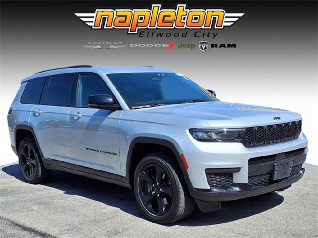 This Grand Cherokee L is well equipped with Altitude Appearance Package, Quick Order Package 22B Altitude (115V Auxiliary Power Outlet, 3rd Row Charge-Only USB Ports, Black Headliner, Bridgestone Brand Tires, Delete Laredo Badge, Gloss Black Exterior Accents, Heated Front Seats, Heated Steering Wheel, Leather Trimmed Bucket Seats, Leather Wrapped Steering Wheel, Molded In Color Black/Gloss Black Roof Rails, Power Liftgate, Rain Sensitive Windshield Wipers, Remote Start System, Selectable Tire Fill Alert, Wheels: 20" x 8.5" Gloss Black Painted Aluminum, and Wireless Charging Pad), 3.45 Rear Axle Ratio, 3rd row seats: split-bench, 4-Wheel Disc Brakes, 6 Speakers, ABS brakes, Air Conditioning, Alloy wheels, AM/FM radio, Anti-whiplash front head restraints, Apple CarPlay/Android Auto, Automatic temperature control, Brake assist, Bumpers: body-color, Cloth Seats, Compass, Delay-off headlights, Driver door bin, Driver vanity mirror, Dual front impact airbags, Dual front side impact airbags, Electronic Stability Control, Emergency communication system, Four wheel independent suspension, Front anti-roll bar, Front Bucket Seats, Front Center Armrest w/Storage, Front dual zone A/C, Front reading lights, Fully automatic headlights, Heated door mirrors, Illuminated entry, Knee airbag, Low tire pressure warning, Manual Fold Seatbacks, Normal Duty Suspension, Occupant sensing airbag, Outside temperature display, Overhead airbag, Overhead console, Panic alarm, ParkView Rear Back-Up Camera, Passenger door bin, Passenger vanity mirror, Power door mirrors, Power driver seat, Power steering, Power windows, Radio data system, Radio: Uconnect 5 w/8.4" Display, Rear air conditioning, Rear anti-roll bar, Rear reading lights, Rear window defroster, Rear window wiper, Reclining 3rd row seat, Remote keyless entry, Roof rack: rails only, Security system, Speed control, Speed-Sensitive Wipers, Split folding rear seat, Spoiler, Steering wheel mounted audio controls, Tachometer, Telescoping steering wheel, Tilt steering wheel, Traction control, Trip computer, Turn signal indicator mirrors, Variably intermittent wipers, and Wheels: 18" x 8.0" Fully Painted Aluminum.