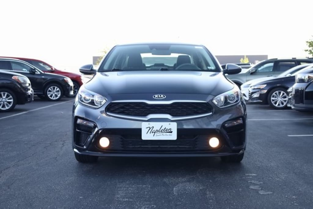 This Forte is well equipped with Kia Certified Pre-Owned Certified, 4 Speakers, 4-Wheel Disc Brakes, ABS brakes, Air Conditioning, Alloy wheels, AM/FM radio, Apple CarPlay & Android Auto, Brake assist, Bumpers: body-color, Delay-off headlights, Driver door bin, Driver vanity mirror, Dual front impact airbags, Dual front side impact airbags, Electronic Stability Control, Exterior Parking Camera Rear, Front anti-roll bar, Front Bucket Seats, Front Center Armrest, Front reading lights, Front wheel independent suspension, Fully automatic headlights, Illuminated entry, Lane Departure Warning System, Low tire pressure warning, Occupant sensing airbag, Outside temperature display, Overhead airbag, Overhead console, Panic alarm, Passenger door bin, Passenger vanity mirror, Power door mirrors, Power steering, Power windows, Radio data system, Radio: AM/FM/MP3 Display Audio System, Rear reading lights, Rear window defroster, Remote keyless entry, Security system, Speed control, Split folding rear seat, Steering wheel mounted audio controls, Tachometer, Telescoping steering wheel, Tilt steering wheel, Traction control, Trip computer, Variably intermittent wipers, Wheels: 16" Machine Finish Alloy, and Woven Cloth Seat Trim.