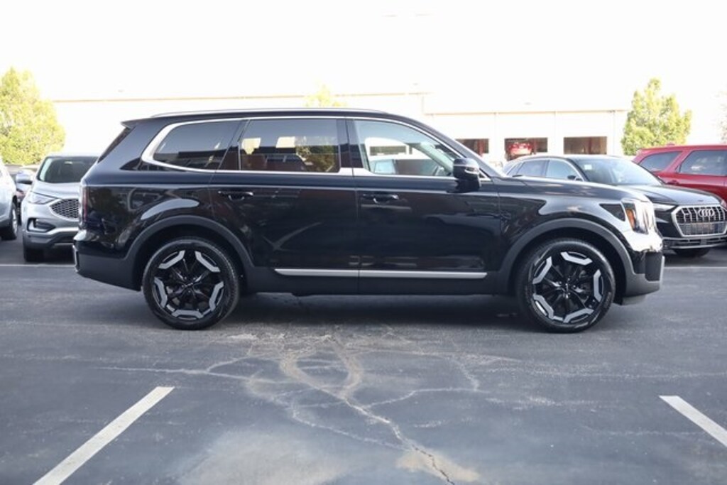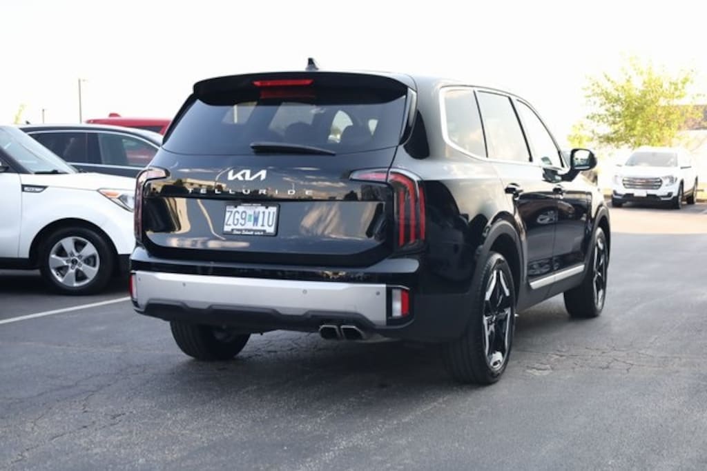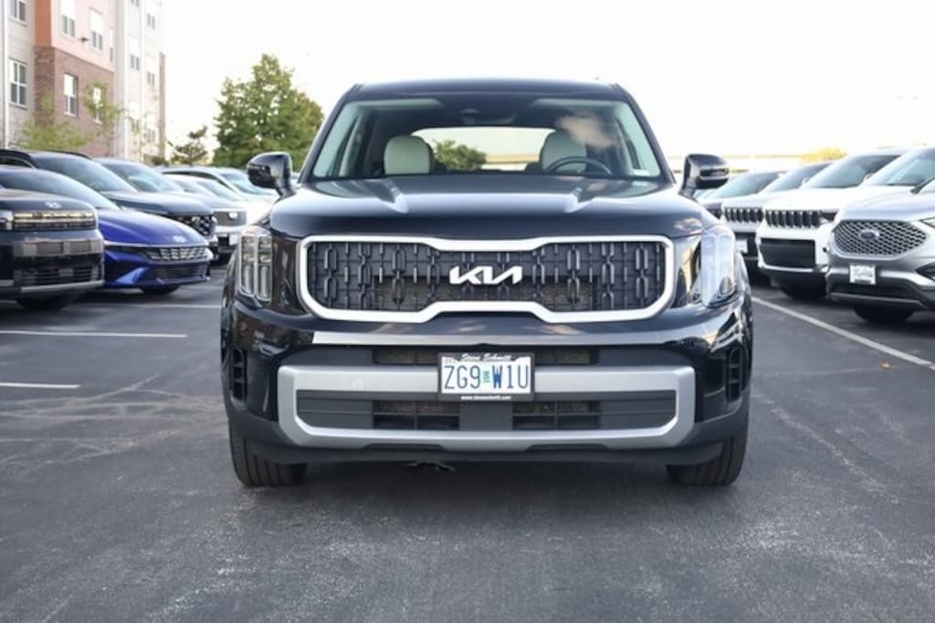 This Telluride is well equipped with EX Captain's Chair Package (2nd Row Captain Chairs), Kia Certified Pre-Owned Certified, 3.510 Axle Ratio, 3rd row seats: split-bench, 4-Wheel Disc Brakes, 6 Speakers, ABS brakes, Air Conditioning, Alloy wheels, AM/FM radio: SiriusXM, Apple CarPlay & Android Auto, Auto High-beam Headlights, Auto-dimming Rear-View mirror, Automatic temperature control, Brake assist, Bumpers: body-color, Carpet Floor Mats, Compass, Delay-off headlights, Driver door bin, Driver vanity mirror, Dual front impact airbags, Dual front side impact airbags, Electronic Stability Control, Emergency communication system: 911 Connect, Exterior Parking Camera Rear, Four wheel independent suspension, Front anti-roll bar, Front Bucket Seats, Front Center Armrest, Front dual zone A/C, Front reading lights, Fully automatic headlights, Heated & Ventilated Front Bucket Seats, Heated door mirrors, Heated front seats, Illuminated entry, Knee airbag, Leather Seat Trim, Leather Shift Knob, Leather steering wheel, Low tire pressure warning, Navigation System, Occupant sensing airbag, Outside temperature display, Overhead airbag, Overhead console, Panic alarm, Passenger door bin, Passenger vanity mirror, Power door mirrors, Power driver seat, Power Liftgate, Power moonroof, Power passenger seat, Power steering, Power windows, Radio data system, Radio: AM/FM Display Audio System, Rear air conditioning, Rear anti-roll bar, Rear audio controls, Rear reading lights, Rear seat center armrest, Rear side impact airbag, Rear window defroster, Rear window wiper, Reclining 3rd row seat, Remote keyless entry, Roof rack: rails only, Security system, Smart Key w/ Push Button and Remote Start, Speed control, Speed-sensing steering, Split folding rear seat, Spoiler, Steering wheel mounted audio controls, Tachometer, Telescoping steering wheel, Tilt steering wheel, Traction control, Trip computer, Turn signal indicator mirrors, Variably intermittent wipers, Ventilated front seats, and Wheels: 20" x 7.5" Black Finish.