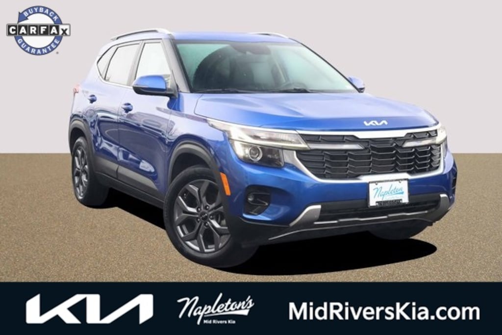 This Seltos is well equipped with Kia Certified Pre-Owned Certified, 4-Wheel Disc Brakes, 6 Speakers, 6.052 Axle Ratio, ABS brakes, Air Conditioning, Alloy wheels, AM/FM radio: SiriusXM, Apple CarPlay & Android Auto, Auto High-beam Headlights, Automatic temperature control, Brake assist, Bumpers: body-color, Carpet Floor Mats, Cloth & Sofino Premium Leatherette Seat Trim, Delay-off headlights, Driver door bin, Driver vanity mirror, Dual front impact airbags, Dual front side impact airbags, Electronic Stability Control, Emergency communication system: 911 Connect, Exterior Parking Camera Rear, Front anti-roll bar, Front Bucket Seats, Front Center Armrest, Front fog lights, Front reading lights, Front wheel independent suspension, Fully automatic headlights, Heated door mirrors, Illuminated entry, Leather Shift Knob, Leather steering wheel, Low tire pressure warning, Navigation System, Occupant sensing airbag, Outside temperature display, Overhead airbag, Overhead console, Panic alarm, Passenger door bin, Passenger vanity mirror, Power door mirrors, Power steering, Power windows, Radio: AM/FM/HD/Satellite Display System, Rear seat center armrest, Rear window defroster, Rear window wiper, Remote keyless entry, Security system, Speed control, Speed-sensing steering, Split folding rear seat, Spoiler, Steering wheel mounted audio controls, Tachometer, Telescoping steering wheel, Tilt steering wheel, Traction control, Trip computer, Turn signal indicator mirrors, Variably intermittent wipers, Wheel Locks, and Wheels: 17" Alloy w/Dark Gray Finish.