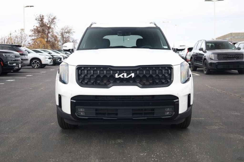 This Telluride is well equipped with Kia Certified Pre-Owned Certified, 10 Speakers, 3.648 Axle Ratio, 3rd row seats: split-bench, 4-Wheel Disc Brakes, ABS brakes, Air Conditioning, Alloy wheels, AM/FM radio: SiriusXM, Apple CarPlay & Android Auto, Auto High-beam Headlights, Auto-dimming Rear-View mirror, Auto-leveling suspension, Automatic temperature control, Brake assist, Bumpers: body-color, Carpet Floor Mats, Compass, Delay-off headlights, Driver door bin, Driver vanity mirror, Dual front impact airbags, Dual front side impact airbags, Electronic Stability Control, Emergency communication system: 911 Connect, Exterior Parking Camera Rear, Four wheel independent suspension, Front anti-roll bar, Front Bucket Seats, Front Center Armrest, Front dual zone A/C, Front fog lights, Front reading lights, Fully automatic headlights, Garage door transmitter: HomeLink, harman/kardon® Speakers, Heads-Up Display, Heated & Ventilated Front Bucket Seats, Heated door mirrors, Heated front seats, Heated rear seats, Heated steering wheel, Illuminated entry, Knee airbag, Leather Shift Knob, Leather steering wheel, Low tire pressure warning, Memory seat, Navigation System, Occupant sensing airbag, Outside temperature display, Overhead airbag, Overhead console, Panic alarm, Passenger door bin, Passenger vanity mirror, Power door mirrors, Power driver seat, Power Liftgate, Power moonroof, Power passenger seat, Power steering, Power windows, Premium Nappa Leather Seat Trim, Radio data system, Radio: AM/FM Harman Kardon Audio System, Rain sensing wipers, Rear air conditioning, Rear anti-roll bar, Rear audio controls, Rear reading lights, Rear side impact airbag, Rear window defroster, Rear window wiper, Reclining 3rd row seat, Remote keyless entry, Roof rack: rails only, Security system, Smart Key w/ Push Button and Remote Start, Speed control, Speed-sensing steering, Split folding rear seat, Spoiler, Steering wheel mounted audio controls, Tachometer, Telescoping steering wheel, Tilt steering wheel, Traction control, Trip computer, Turn signal indicator mirrors, Variably intermittent wipers, Ventilated front seats, Ventilated rear seats, and Wheels: 20" x 7.5" Black Finish X-LINE Exclusive.