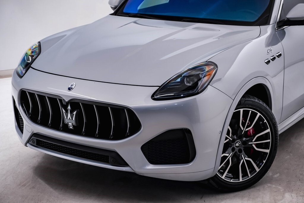 This Grecale is well equipped with GT Premium Plus Package (12-Way Heated & Ventilated Power Fr Luxury Seats, Ambient Int Lighting on Dashboard & Door Panels, Dual-Pane Panoramic Sunroof, Full Premium Leather Seat Upholstery, Heated Rear Seats, Heated Steering Wheel, Heated Windshield Washer Nozzles, Radio: High Premium Sonus Faber Audio System, and Tri-Zone Climate Control), Techssistance Package (Heads-Up Display and Wireless Phone Charger), Driver Assistance Plus Package (Active Driving Assist and Traffic Sign Information), Wheels: 20" Machine Polished Forged Etere, 14 Speakers, 3.27 Axle Ratio, 4-Wheel Disc Brakes, ABS brakes, Air Conditioning, AM/FM radio: SiriusXM, Apple CarPlay/Android Auto, Auto High-beam Headlights, Auto-dimming door mirrors, Auto-dimming Rear-View mirror, Automatic temperature control, Brake assist, Bumpers: body-color, Compass, Delay-off headlights, Driver door bin, Driver vanity mirror, Dual front impact airbags, Dual front side impact airbags, Electronic Stability Control, Emergency communication system: Maserati Connect, Exterior Parking Camera Rear, Four wheel independent suspension, Front anti-roll bar, Front Bucket Seats, Front Center Armrest, Front dual zone A/C, Front reading lights, Garage door transmitter: HomeLink, Heated door mirrors, Illuminated entry, Leather Seat Upholstery, Leather steering wheel, Low tire pressure warning, Memory seat, Navigation System, Occupant sensing airbag, Outside temperature display, Overhead airbag, Overhead console, Passenger door bin, Passenger vanity mirror, Power door mirrors, Power driver seat, Power Liftgate, Power passenger seat, Power steering, Power windows, Radio data system, Radio: Sonus Faber 860 Watts Premium Audio System, Rain sensing wipers, Rear anti-roll bar, Rear fog lights, Rear reading lights, Rear seat center armrest, Rear window defroster, Rear window wiper, Remote keyless entry, Security system, Speed control, Speed-sensing steering, Speed-Sensitive Wipers, Split folding rear seat, Spoiler, Steering wheel memory, Steering wheel mounted audio controls, Tachometer, Telescoping steering wheel, Tilt steering wheel, Traction control, Trip computer, Turn signal indicator mirrors, Variably intermittent wipers, and Voltmeter.