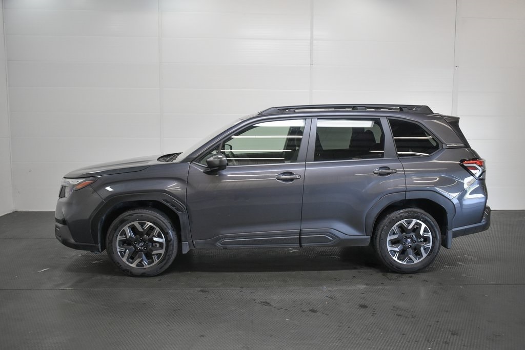This Forester is well equipped with Power Rear Gate & Blind Spot Detection w/RCTA (Automatic Emergency Steering, Blind-Spot Detection (BSD)/RCTA System, and Power Rear Gate), 4-Wheel Disc Brakes, 6 Speakers, ABS brakes, Air Conditioning, Alloy wheels, AM/FM radio: SiriusXM with 360L, Anti-whiplash front head restraints, Auto High-beam Headlights, Auto-Dimming Exterior Mirror w/Approach Light, Auto-Dimming Mirror w/Compass & HomeLink, Automatic temperature control, Brake assist, Bumpers: body-color, Cargo Net, Driver door bin, Driver vanity mirror, Dual front impact airbags, Dual front side impact airbags, Electronic Stability Control, Emergency communication system: MySubaru Safety (3-year free trial), Exterior Parking Camera Rear, Four wheel independent suspension, Front anti-roll bar, Front Bucket Seats, Front Center Armrest, Front dual zone A/C, Front fog lights, Front reading lights, Fully automatic headlights, Heated door mirrors, Heated Front Bucket Seats, Heated front seats, Illuminated entry, Knee airbag, Leather steering wheel, Low tire pressure warning, Occupant sensing airbag, Outside temperature display, Overhead airbag, Overhead console, Panic alarm, Passenger door bin, Passenger vanity mirror, Power door mirrors, Power driver seat, Power moonroof: Panoramic, Power steering, Power windows, Premium Textured Cloth Upholstery, Radio data system, Radio: Subaru 11.6" Multimedia Plus System, Rear anti-roll bar, Rear seat center armrest, Rear window defroster, Rear window wiper, Remote keyless entry, Security system, Speed control, Speed-sensing steering, Splash Guards, Split folding rear seat, Spoiler, Steering wheel mounted audio controls, Tachometer, Telescoping steering wheel, Tilt steering wheel, Traction control, Trip computer, Variably intermittent wipers, and Wheels: 17" x 7.0 J Dark Metallic Aluminum-Alloy.