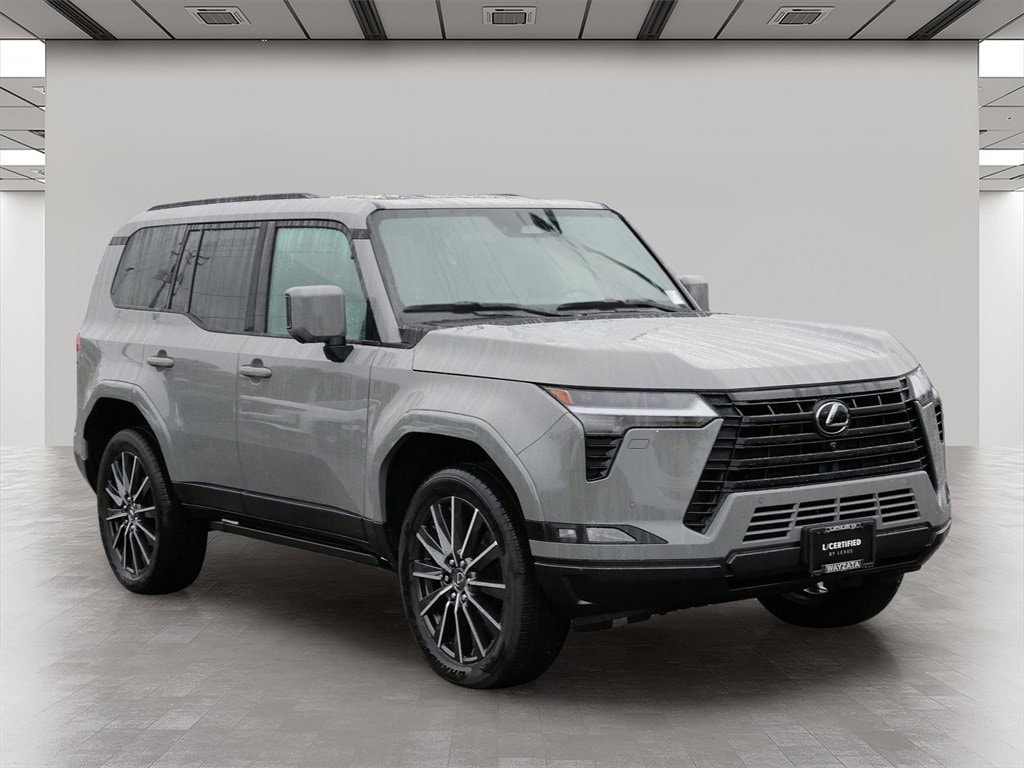 This GX is well equipped with L/Certified Certified, ABS brakes, Active Cruise Control, Alloy wheels, Electronic Stability Control, Front dual zone A/C, Heated & Ventilated Front Bucket Seats, Heated door mirrors, Heated front seats, Heated rear seats, Illuminated entry, Low tire pressure warning, Navigation System, Power Liftgate, Remote keyless entry, Semi-Aniline Leather Seat Trim, Traction control, 21 Speakers, 3rd row seats: split-bench, 4-Wheel Disc Brakes, Adaptive suspension, Air Conditioning, AM/FM radio, Anti-whiplash front head restraints, Apple CarPlay/Android Auto, Auto High-beam Headlights, Auto tilt-away steering wheel, Auto-dimming door mirrors, Auto-dimming Rear-View mirror, Automatic temperature control, Brake assist, Bumpers: body-color, Delay-off headlights, Driver door bin, Driver vanity mirror, Dual front impact airbags, Dual front side impact airbags, Emergency communication system: Safety Connect (up to 10-year trial subscription included), Exterior Parking Camera Rear, Four wheel independent suspension, Front anti-roll bar, Front Bucket Seats, Front Center Armrest w/Storage, Front fog lights, Front reading lights, Fully automatic headlights, Garage door transmitter: HomeLink, Genuine wood console insert, Knee airbag, Leather Shift Knob, Leather steering wheel, Memory seat, Navigation system: Drive Connect Cloud Navigation (3-year trial subscription included), Occupant sensing airbag, Overhead airbag, Panic alarm, Passenger door bin, Passenger vanity mirror, Power door mirrors, Power driver seat, Power passenger seat, Power steering, Power windows, Radio: Lexus Interface w/14 Touchscreen, Rear air conditioning, Rear anti-roll bar, Rear reading lights, Rear seat center armrest, Rear side impact airbag, Rear window defroster, Rear window wiper, Security system, Speed control, Speed-sensing steering, Split folding rear seat, Spoiler, Steering wheel memory, Steering wheel mounted audio controls, Tachometer, Telescoping steering wheel, Tilt steering wheel, Trip computer, Turn signal indicator mirrors, Variably intermittent wipers, Ventilated front seats, and Wheels: 22 x 7.5J 12-Spoke Forged Alloy.