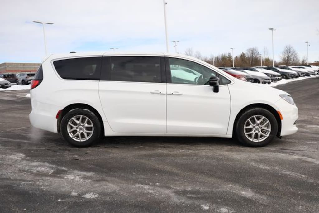 This Voyager is well equipped with Quick Order Package 27E, 17" x 7" Aluminum Wheels, 3.25 Axle Ratio, 3rd row seats: split-bench, 4-Wheel Disc Brakes, 6 Speakers, ABS brakes, Air Conditioning, Alloy wheels, AM/FM radio: SiriusXM, Apple CarPlay/Android Auto, Automatic temperature control, Black Seats, Brake assist, Bumpers: body-color, Caprice Leatherette Bucket Seats, Compass, Delay-off headlights, Driver door bin, Driver vanity mirror, Driver's Seat Mounted Armrest, Dual front impact airbags, Dual front side impact airbags, Electronic Stability Control, Emergency communication system: Chrysler Connect, Four wheel independent suspension, Front anti-roll bar, Front Bucket Seats, Front dual zone A/C, Front reading lights, Fully automatic headlights, Heated door mirrors, Heated front seats, Heated steering wheel, Illuminated entry, Knee airbag, Low tire pressure warning, Occupant sensing airbag, Outside temperature display, Overhead airbag, Overhead console, Panic alarm, ParkView Rear Back-Up Camera, Passenger door bin, Passenger seat mounted armrest, Passenger vanity mirror, Power door mirrors, Power driver seat, Power Liftgate, Power steering, Power windows, Radio data system, Radio: Uconnect 5 w/10.1" Display, Rain sensing wipers, Rear air conditioning, Rear window defroster, Rear window wiper, Reclining 3rd row seat, Remote keyless entry, Security system, Speed control, Split folding rear seat, Spoiler, Steering wheel mounted audio controls, Tachometer, Telescoping steering wheel, Tilt steering wheel, Touring Suspension, Traction control, Trip computer, Turn signal indicator mirrors, Variably intermittent wipers, and Voltmeter.