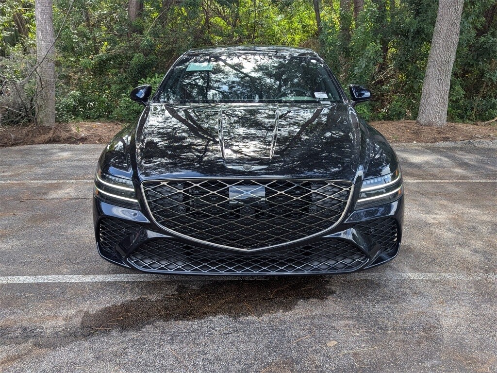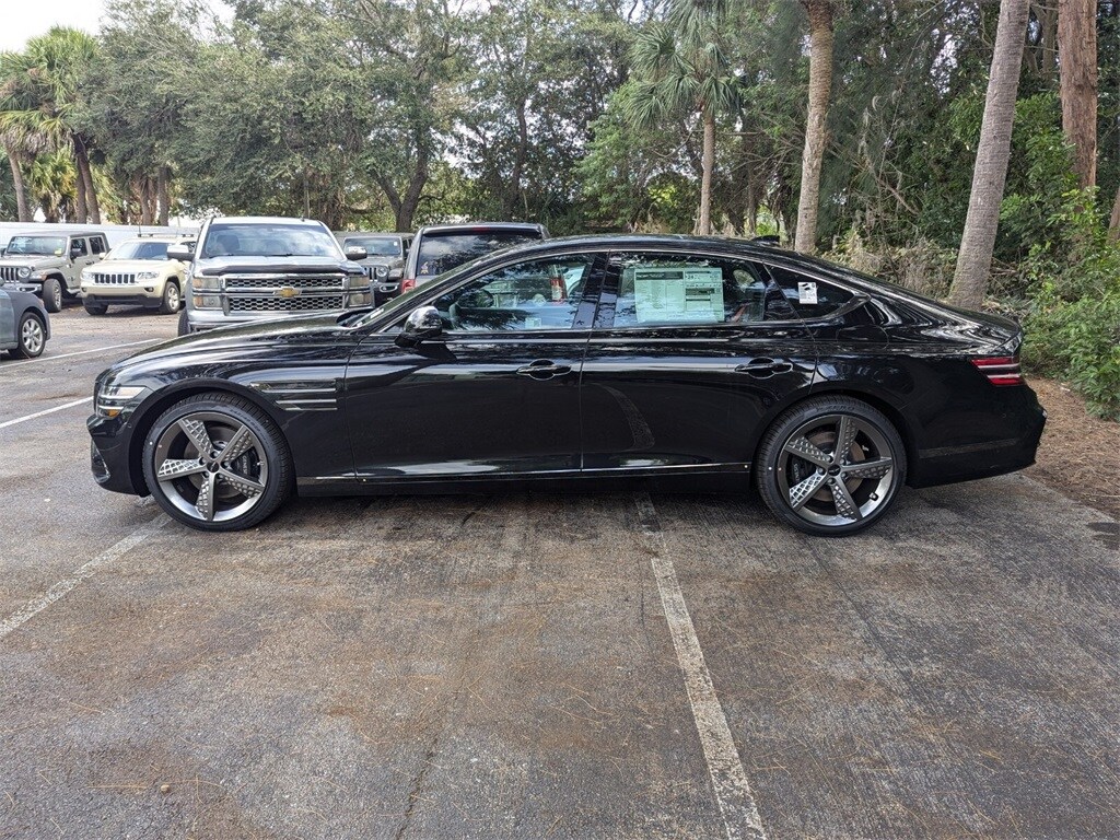 Features: Option Group 01, 18 Speakers, 4-Wheel Disc Brakes, ABS brakes, Adaptive suspension, Air Conditioning, Alloy wheels, AM/FM radio: SiriusXM, Android Auto & Apple CarPlay, Anti-whiplash front head restraints, Auto High-beam Headlights, Auto tilt-away steering wheel, Auto-dimming door mirrors, Auto-dimming Rear-View mirror, Automatic temperature control, Bumpers: body-color, Compass, Delay-off headlights, Driver door bin, Driver vanity mirror, Dual front impact airbags, Dual front side impact airbags, Electronic Stability Control, Emergency communication system: Genesis Connected Services, Exterior Parking Camera Rear, Four wheel independent suspension, Front anti-roll bar, Front Bucket Seats, Front Center Armrest, Front dual zone A/C, Front reading lights, Fully automatic headlights, Garage door transmitter: HomeLink, Heated & Ventilated Front Bucket Seats, Heated door mirrors, Heated front seats, Heated rear seats, Heated steering wheel, Illuminated Door Scuff Plates, Illuminated entry, Knee airbag, Leather Seating Surfaces, Leather steering wheel, Low tire pressure warning, Memory seat, Navigation System, NFC Key Card, Occupant sensing airbag, Outside temperature display, Overhead airbag, Overhead console, Panic alarm, Passenger door bin, Passenger vanity mirror, Power door mirrors, Power driver seat, Power moonroof, Power passenger seat, Power steering, Power windows, Radio data system, Radio: AM/FM/HD/SiriusXM Bang & Olufsen Audio Sys, Rain sensing wipers, Rear air conditioning, Rear anti-roll bar, Rear reading lights, Rear seat center armrest, Rear side impact airbag, Rear window defroster, Remote keyless entry, Security system, Speed control, Speed-sensing steering, Speed-Sensitive Wipers, Steering wheel memory, Steering wheel mounted audio controls, Tachometer, Telescoping steering wheel, Tilt steering wheel, Traction control, Trip computer, Turn signal indicator mirrors, Variably intermittent wipers, Ventilated front seats, and Wheels: 20" x 8.5J Fr & 20" x 9.5J Rr Sport Alloy. Price includes: $2500 - Genesis Retail Bonus Cash. Exp. 09/30/2025