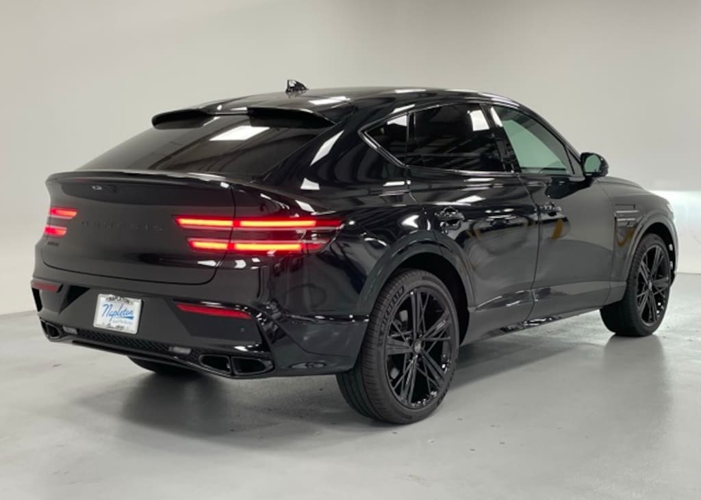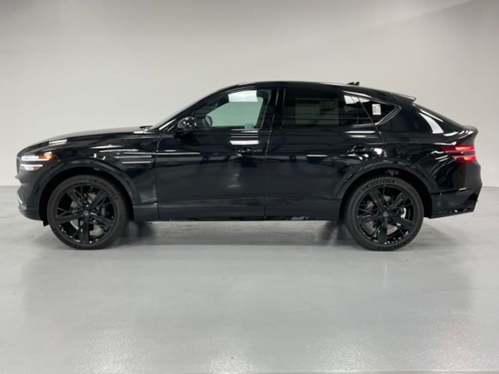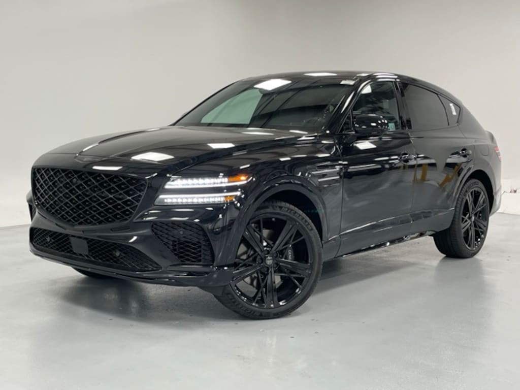 This GV80 Coupe is well equipped with Option Group 01, 18 Speakers, 4-Wheel Disc Brakes, ABS brakes, Adaptive suspension, Air Conditioning, Alloy wheels, AM/FM radio: SiriusXM, Android Auto & Apple CarPlay, Anti-whiplash front head restraints, Auto High-beam Headlights, Auto tilt-away steering wheel, Auto-dimming door mirrors, Auto-dimming Rear-View mirror, Automatic temperature control, Brake assist, Bumpers: body-color, Cargo Mat, Cargo Net, Compass, Delay-off headlights, Driver door bin, Driver vanity mirror, Dual front impact airbags, Dual front side impact airbags, Electronic Stability Control, Emergency communication system: Genesis Connected Services, Exterior Parking Camera Rear, First Aid Kit, Four wheel independent suspension, Front anti-roll bar, Front Bucket Seats, Front Center Armrest, Front dual zone A/C, Front reading lights, Fully automatic headlights, Garage door transmitter: HomeLink, Genuine wood console insert, Genuine wood dashboard insert, Heads-Up Display, Heated door mirrors, Heated front seats, Heated rear seats, Heated steering wheel, Htd & Ventilated Multi-Adjustable Fr Bucket Seats, Illuminated entry, Knee airbag, Low tire pressure warning, Memory seat, Nappa Leather Seating Surfaces, Navigation System, Occupant sensing airbag, Outside temperature display, Overhead airbag, Overhead console, Panic alarm, Passenger door bin, Passenger vanity mirror, Power door mirrors, Power driver seat, Power Liftgate, Power moonroof, Power passenger seat, Power steering, Power windows, Radio data system, Radio: AM/FM/HD Bang & Olufsen Premium Audio, Rain sensing wipers, Rear air conditioning, Rear anti-roll bar, Rear reading lights, Rear seat center armrest, Rear side impact airbag, Rear window defroster, Remote keyless entry, Security system, Speed control, Speed-sensing steering, Speed-Sensitive Wipers, Split folding rear seat, Spoiler, Sport steering wheel, Steering wheel memory, Steering wheel mounted audio controls, Tachometer, Telescoping steering wheel, Tilt steering wheel, Traction control, Trip computer, Turn signal indicator mirrors, Variably intermittent wipers, Ventilated front seats, Ventilated rear seats, and Wheels: 22" x 9.5J Black Matte Sport Alloy.