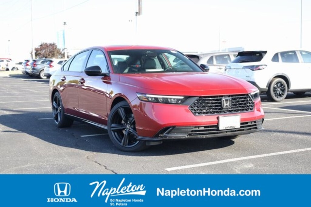 Radiant Red 2025 Honda Accord Hybrid 4D Sedan Sport-L FWD eCVT 2.0L I4 DOHC 16V