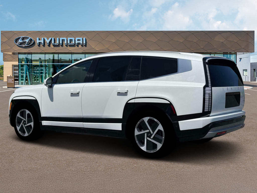 This IONIQ 9 is well equipped with Tons of Options!, 14 Speakers, 18" Alloy wheels, 3rd row seats: split-bench, 4-Wheel Disc Brakes, ABS brakes, Air Conditioning, AM/FM radio: SiriusXM, Apple CarPlay & Android Auto, Auto High-beam Headlights, Auto-dimming Rear-View mirror, Auto-leveling suspension, Automatic temperature control, Bodyside moldings, Brake assist, Cargo Tray, Carpeted Floor Mats, Color Match Body Molding, Delay-off headlights, Driver door bin, Driver vanity mirror, Dual front impact airbags, Dual front side impact airbags, Electronic Stability Control, Emergency communication system: Bluelink+, First Aid Kit, Four wheel independent suspension, Front anti-roll bar, Front Bucket Seats, Front Center Armrest, Front dual zone A/C, Front reading lights, Fully automatic headlights, Garage door transmitter: HomeLink, Heated & Ventilated Front Bucket Seats, Heated door mirrors, Heated front seats, Heated rear seats, Heated steering wheel, Illuminated entry, Leather steering wheel, Low tire pressure warning, Memory seat, Navigation System, Occupant sensing airbag, Outside temperature display, Overhead airbag, Overhead console, Panic alarm, Passenger door bin, Passenger vanity mirror, Power door mirrors, Power driver seat, Power Liftgate, Power moonroof: Panoramic, Power passenger seat, Power steering, Power windows, Radio: AM/FM/SiriusXM/HD Audio System, Rain sensing wipers, Rear air conditioning, Rear anti-roll bar, Rear reading lights, Rear side impact airbag, Rear window defroster, Rear window wiper, Reclining 3rd row seat, Remote keyless entry, Roadside Assistance Kit, Security system, Speed control, Split folding rear seat, Spoiler, Steering wheel memory, Steering wheel mounted audio controls, Telescoping steering wheel, Tilt steering wheel, Traction control, Trip computer, Turn signal indicator mirrors, Two-Tone H-Tex Leatherette Seating Surfaces, Variably intermittent wipers, Ventilated front seats, Ventilated rear seats, and Wheels: 21" x 9J 5-Spoke Alloy.