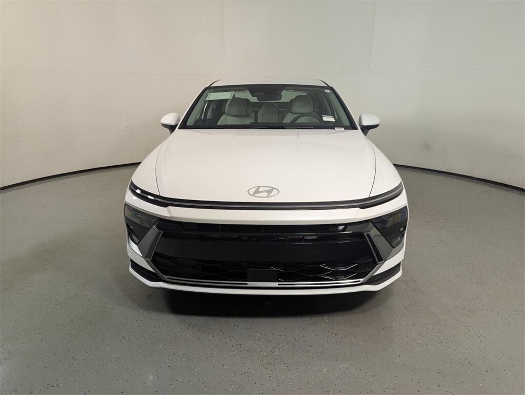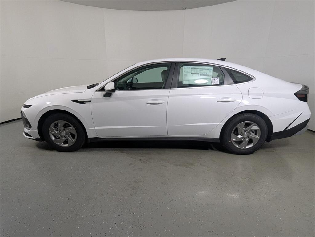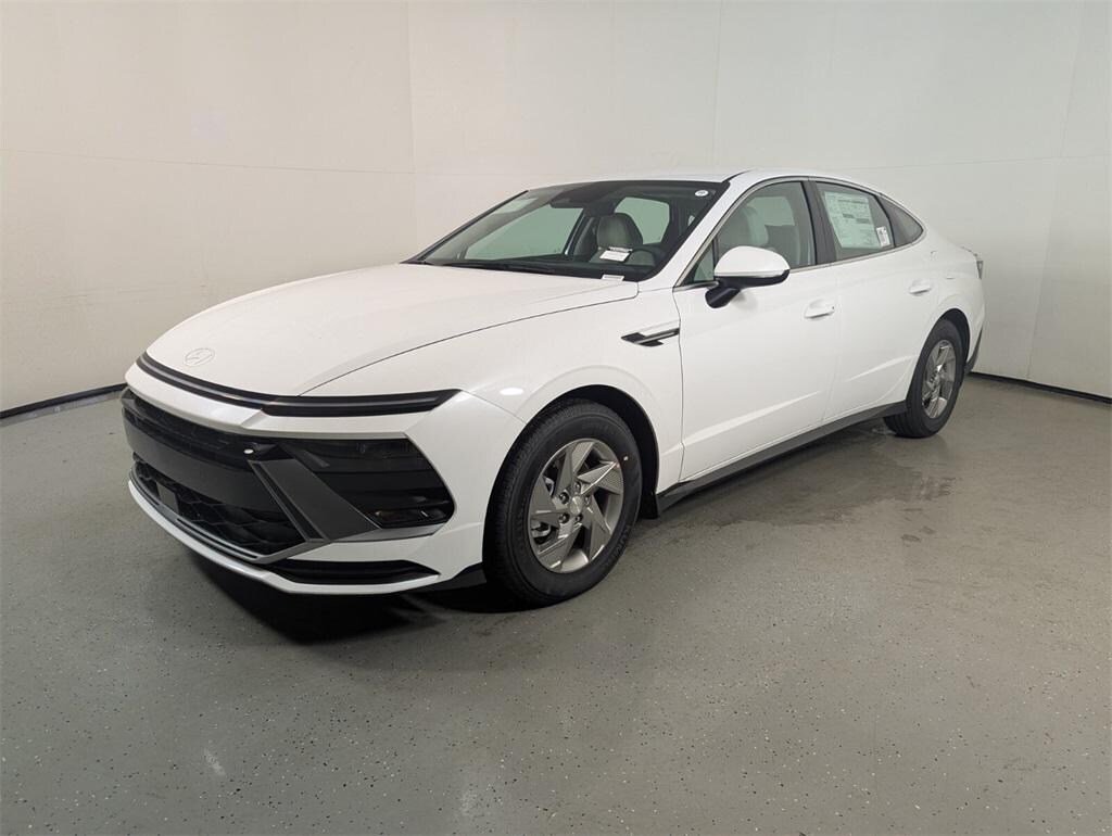 Features: Option Group 01, Sonata SE, 4D Sedan, I4, 8-Speed Automatic, FWD, Serenity White, Gray Cloth, 16" x 6.5J Aluminum Alloy Wheels, 4-Wheel Disc Brakes, 6 Speakers, ABS brakes, Air Conditioning, Alloy wheels, AM/FM radio: SiriusXM, Apple CarPlay & Android Auto, Auto High-beam Headlights, Brake assist, Bumpers: body-color, Cargo Tray, Carpeted Floor Mats, Delay-off headlights, Driver door bin, Driver vanity mirror, Dual front impact airbags, Dual front side impact airbags, Electronic Stability Control, Emergency communication system: Bluelink+, Exterior Parking Camera Rear, Four wheel independent suspension, Front anti-roll bar, Front Bucket Seats, Front Center Armrest, Front reading lights, Fully automatic headlights, Illuminated entry, Knee airbag, Low tire pressure warning, Mud Guards, Occupant sensing airbag, Outside temperature display, Overhead airbag, Overhead console, Panic alarm, Passenger door bin, Passenger vanity mirror, Power door mirrors, Power steering, Power windows, Premium Cloth Seating Surfaces, Radio data system, Radio: AM/FM/HD/MP3/SiriusXM, Rear anti-roll bar, Rear side impact airbag, Rear window defroster, Remote keyless entry, Roadside Assistance Kit, Security system, Speed control, Speed-sensing steering, Speed-Sensitive Wipers, Split folding rear seat, Steering wheel mounted audio controls, Tachometer, Telescoping steering wheel, Tilt steering wheel, Traction control, Trip computer, and Variably intermittent wipers.