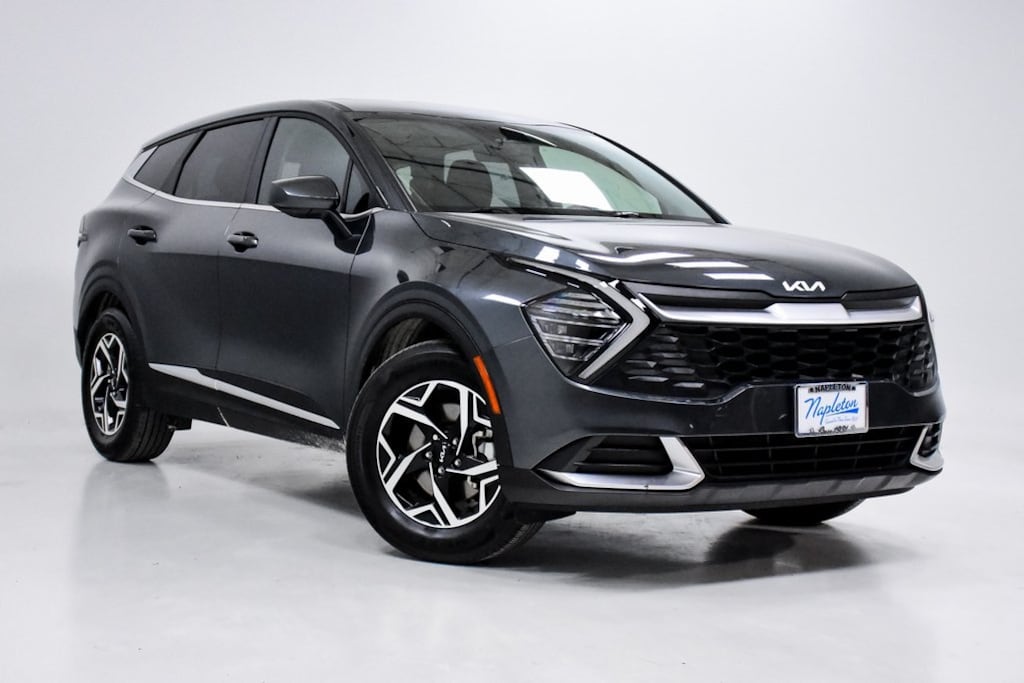 This Sportage is well equipped with 17" Alloy Wheels, 4-Wheel Disc Brakes, 6 Speakers, ABS brakes, Air Conditioning, Alloy wheels, AM/FM radio, Auto High-beam Headlights, Axle Ratio: 3.648, Brake assist, Bumpers: body-color, Cargo Mat w/Seatback Protection, Cargo Net Hybrid w/o Audio, Carpeted Floor Mats, Cloth Seat Trim, Delay-off headlights, Driver door bin, Driver vanity mirror, Dual front impact airbags, Dual front side impact airbags, Electronic Stability Control, Four wheel independent suspension, Front anti-roll bar, Front Bucket Seats, Front Center Armrest, Fully automatic headlights, Illuminated entry, Low tire pressure warning, Occupant sensing airbag, Outside temperature display, Overhead airbag, Overhead console, Panic alarm, Passenger door bin, Passenger vanity mirror, Power door mirrors, Power steering, Power windows, Radio: AM/FM/HD Audio System, Rear anti-roll bar, Rear seat center armrest, Rear side impact airbag, Rear window defroster, Rear window wiper, Remote keyless entry, Security system, Speed control, Speed-sensing steering, Split folding rear seat, Spoiler, Steering wheel mounted audio controls, Tachometer, Telescoping steering wheel, Tilt steering wheel, Traction control, Trip computer, and Variably intermittent wipers.