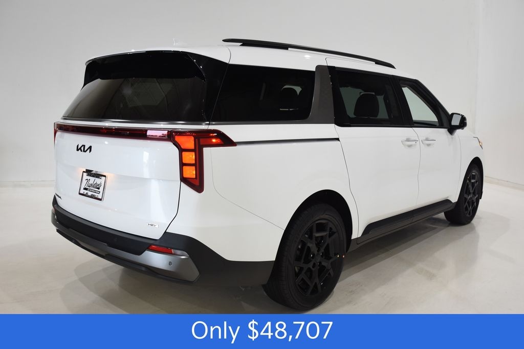 Price includes: $500 - Sticker Sales Event Retail Bonus Cash. Exp. 01/02/2026 Snow White Pearl This Carnival Hybrid SX is nicely equipped with SX Dark Edition Package (Dark Edition Interior Design and Wheels: 19" Black D-Cut Customizing), Active Cruise Control, Alloy wheels, Apple CarPlay & Android Auto, Auto High-beam Headlights, Automatic temperature control, Brake assist, Compass, Emergency communication system, Exterior Parking Camera Rear, Front dual zone A/C, Front fog lights, Fully automatic headlights, Heated & Ventilated Front Bucket Seats, Heated door mirrors, Heated front seats, Illuminated entry, Low tire pressure warning, Memory seat, Navigation System, Power 2nd-Row Moonroof, Power door mirrors, Power driver seat, Power Liftgate, Power moonroof, Power windows, Remote keyless entry, Security system, Traction control, 3rd row seats: split-bench, 4-Wheel Disc Brakes, 8 Speakers, ABS brakes, Air Conditioning, AM/FM radio: SiriusXM, Artificial Leather Seat Trim, Bumpers: body-color, Delay-off headlights, Driver door bin, Driver vanity mirror, Dual front impact airbags, Dual front side impact airbags, Electronic Stability Control, Four wheel independent suspension, Front anti-roll bar, Front Bucket Seats, Front Center Armrest, Front reading lights, Knee airbag, Leather Shift Knob, Leather steering wheel, Occupant sensing airbag, Outside temperature display, Overhead airbag, Overhead console, Panic alarm, Passenger door bin, Passenger vanity mirror, Power passenger seat, Power steering, Radio: Navigation System w/SiriusXM, Rain sensing wipers, Rear air conditioning, Rear anti-roll bar, Rear reading lights, Rear window defroster, Rear window wiper, Reclining 3rd row seat, Speed control, Speed-sensing steering, Split folding rear seat, Spoiler, Steering wheel mounted audio controls, Tachometer, Telescoping steering wheel, Tilt steering wheel, Trip computer, Turn signal indicator mirrors, Variably intermittent wipers, Ventilated front seats, and Wheels: 19" Black Alloy.