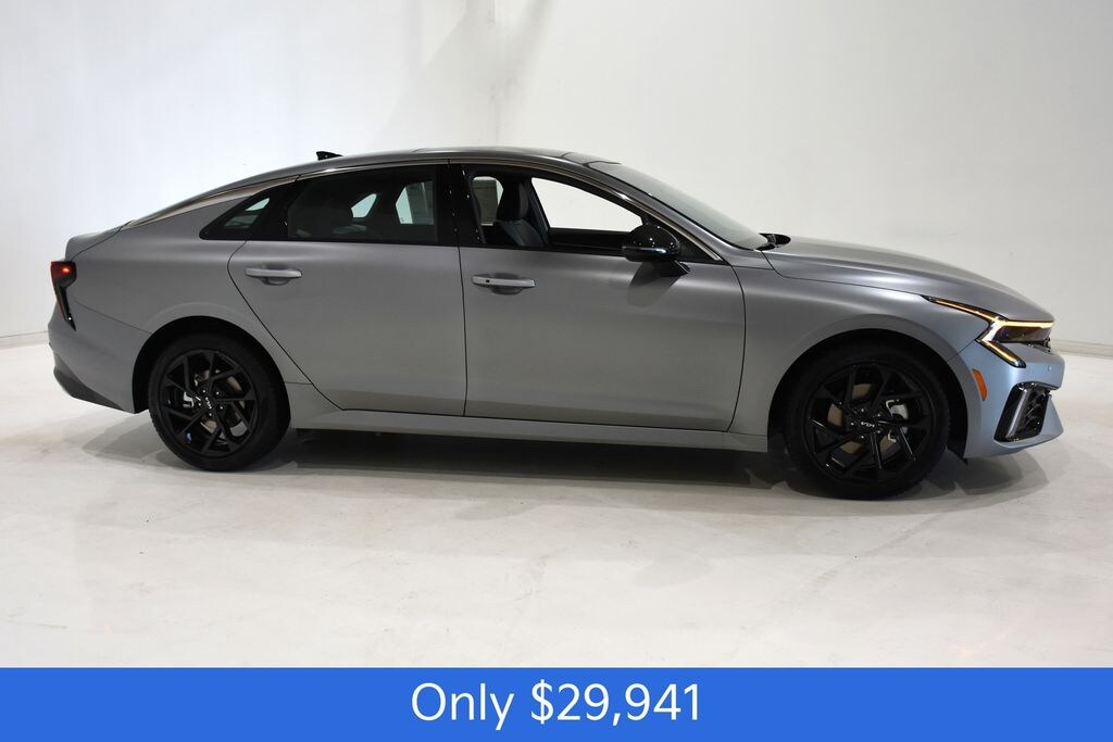 Steel Matte Gray This K5 GT-Line is nicely equipped with GT-Line Premium Package (Active Sound Design, Bose Premium Audio, LED Interior Lighting, Panoramic Sunroof, and Wheels: 18" x 7.5J Unique Gloss Black Alloy), Active Cruise Control, Alloy wheels, Auto High-beam Headlights, Automatic temperature control, Brake assist, Front dual zone A/C, Front fog lights, Fully automatic headlights, Heated door mirrors, Heated front seats, Navigation System, Power door mirrors, Power driver seat, Power windows, Remote keyless entry, Security system, 4-Wheel Disc Brakes, 6 Speakers, ABS brakes, Air Conditioning, AM/FM radio: SiriusXM, Bumpers: body-color, Delay-off headlights, Driver door bin, Driver vanity mirror, Dual front impact airbags, Dual front side impact airbags, Electronic Stability Control, Emergency communication system: Kia Connect (includes 1 year free trial), Four wheel independent suspension, Front anti-roll bar, Front Bucket Seats, Front Center Armrest, Front reading lights, Heated Front Bucket Seats, Illuminated entry, Knee airbag, Leather Shift Knob, Leather steering wheel, Low tire pressure warning, Occupant sensing airbag, Outside temperature display, Overhead airbag, Overhead console, Panic alarm, Passenger door bin, Passenger vanity mirror, Power steering, Radio data system, Radio: AM/FM Audio System, Rear anti-roll bar, Rear seat center armrest, Rear side impact airbag, Rear window defroster, Speed control, Speed-sensing steering, Split folding rear seat, Sport steering wheel, Steering wheel mounted audio controls, Tachometer, Telescoping steering wheel, Tilt steering wheel, Traction control, Trip computer, Turn signal indicator mirrors, and Variably intermittent wipers.