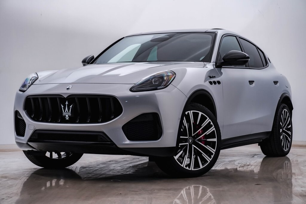 The Grecale Modena embodies the brand's dynamic spirit and features AWD,20-inch staggered wheels, adaptive cruise control,dual-pane panoramic sunroof, and heated front seats.