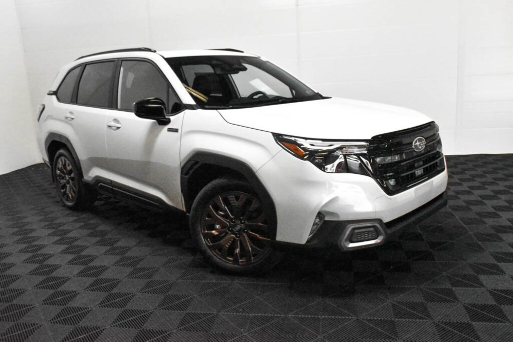 Crystal White Pearl 2025 Subaru Forester Hybrid 4D Sport Utility Sport 2.5L 4-Cylinder DOHC 16V AWD Lineartronic CVT