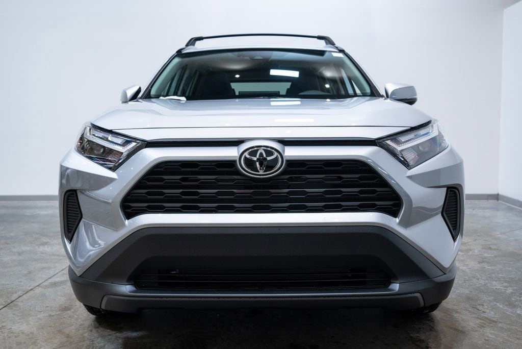 This RAV4 is well equipped with Convenience Package (Front Door Smart Key System w/Push Button Start and Tilt & Slide Moon Roof), Weather Package (3 Spoke Leather Heated Steering Wheel and Front Seat Heating), AWD, Black Fabric Cloth, 4-Wheel Disc Brakes, 6 Speakers, ABS brakes, Air Conditioning, All Weather Floor Liners & Cargo Liner (TMS), Alloy wheels, AM/FM radio: SiriusXM, Auto High-beam Headlights, Automatic temperature control, Brake assist, Bumpers: body-color, Delay-off headlights, Door Sill Protector (TMS), Driver door bin, Driver vanity mirror, Dual front impact airbags, Dual front side impact airbags, Electronic Stability Control, Emergency communication system: Safety Connect (10-year trial), Exterior Parking Camera Rear, Fabric Seat Trim, Four wheel independent suspension, Front anti-roll bar, Front Bucket Seats, Front Center Armrest, Front dual zone A/C, Front reading lights, Fully automatic headlights, Heated door mirrors, Illuminated entry, Knee airbag, Low tire pressure warning, Mudguards (TMS), Occupant sensing airbag, Outside temperature display, Overhead airbag, Overhead console, Panic alarm, Passenger door bin, Passenger vanity mirror, Power door mirrors, Power driver seat, Power steering, Power windows, Radio data system, Radio: AM/FM/XM Audio System, Rear anti-roll bar, Rear seat center armrest, Rear window defroster, Rear window wiper, Remote keyless entry, Roof Rack, Speed control, Speed-sensing steering, Split folding rear seat, Spoiler, Steering wheel mounted audio controls, Tachometer, Telescoping steering wheel, Tilt steering wheel, Traction control, Trip computer, Turn signal indicator mirrors, Variably intermittent wipers, and Wheels: 17 5-Spoke Silver Alloy.