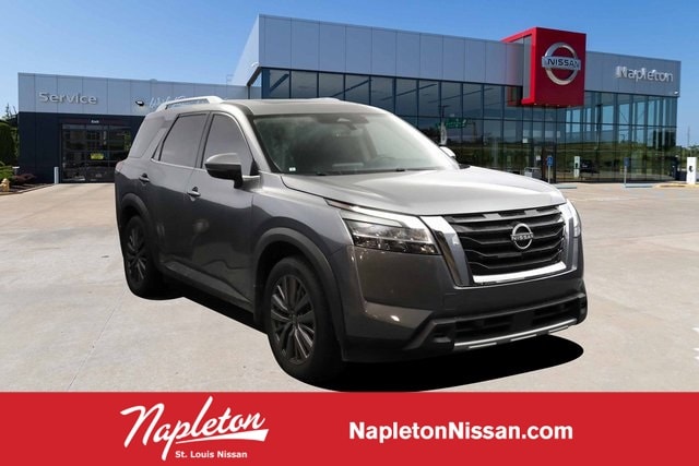 Engine: 3.5L V-6 cyl, Transmission: 9-Speed Automatic, Exterior Color: Gun Metallic, Interior Color: Charcoal,Stock #: PJD04447, Mileage: 28,927 miles miles, Bodystyle: SUV, Drive Line: 4x4, Location: Napleton St. Louis Nissan, Comments: Recent Arrival! CARFAX One-Owner. Gun Metallic 2023 Nissan Pathfinder 4D Sport Utility SL V6 4WD Odometer is 11175 miles below market average!