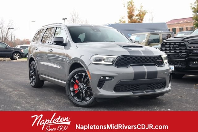 Engine: 5.7L V-8 cyl, Transmission: 8-Speed Automatic, Exterior Color: Destroyer Gray Clearcoat, Interior Color: Red/Black/Ebony,Stock #: CP16770A, Mileage: 44,581 miles miles, Bodystyle: SUV, Drive Line: 4x2, Location: Napleton's Mid Rivers Chrysler Dodge Jeep Ram, Comments: Recent Arrival! CARFAX One-Owner. Destroyer Gray Clearcoat 2023 Dodge Durango R/T Plus RWD 8-Speed Automatic HEMI 5.7L V8 Multi Displacement VVT Clean CARFAX. Odometer is 8617 miles below market average!