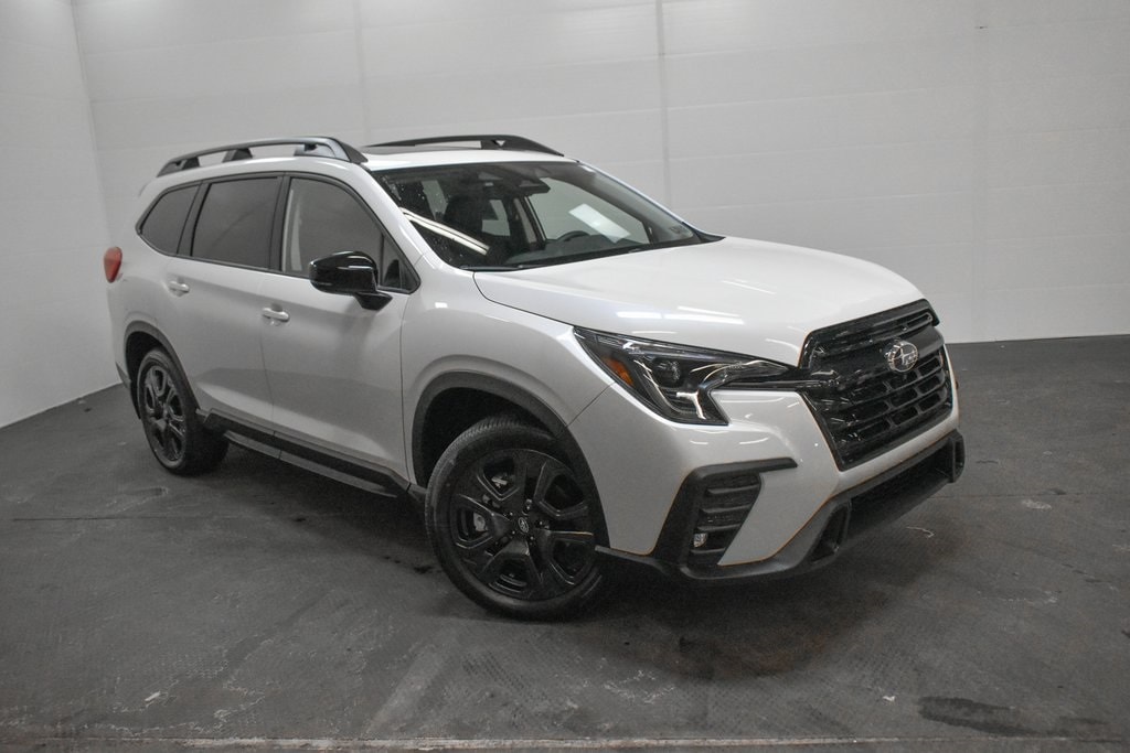 This Ascent is well equipped with 14 Speakers, 3rd row seats: bench, 4-Wheel Disc Brakes, ABS brakes, Air Conditioning, Alloy wheels, AM/FM radio: SiriusXM with 360L, Apple CarPlay & Android Auto, Auto High-beam Headlights, Auto-dimming Rear-View mirror, Automatic temperature control, Brake assist, Bumpers: body-color, Compass, Delay-off headlights, Driver door bin, Driver vanity mirror, Dual front impact airbags, Dual front side impact airbags, Electronic Stability Control, Emergency communication system: MySubaru Companion (5-years free), Exterior Parking Camera Rear, Four wheel independent suspension, Front anti-roll bar, Front Bucket Seats, Front Center Armrest, Front dual zone A/C, Front fog lights, Front reading lights, Fully automatic headlights, Garage door transmitter: HomeLink, harman/kardon® Speakers, Heated and Ventilated Front Bucket Seats, Heated door mirrors, Heated front seats, Heated rear seats, Heated steering wheel, HVAC memory, Illuminated entry, Knee airbag, Leather Shift Knob, Leather steering wheel, Low tire pressure warning, Memory seat, Navigation system: MySubaru Navigator (1-year trial), Occupant sensing airbag, Outside temperature display, Overhead airbag, Overhead console, Panic alarm, Passenger door bin, Passenger vanity mirror, Perforated Nappa Leather-Trimmed Upholstery, Power door mirrors, Power driver seat, Power Liftgate, Power moonroof, Power passenger seat, Power steering, Power windows, Radio data system, Radio: Subaru 11.6" Multimedia System with Navigation, Rain sensing wipers, Rear air conditioning, Rear anti-roll bar, Rear reading lights, Rear window defroster, Rear window wiper, Reclining 3rd row seat, Remote keyless entry, Security system, Speed control, Speed-sensing steering, Split folding rear seat, Spoiler, Steering wheel mounted audio controls, Tachometer, Telescoping steering wheel, Tilt steering wheel, Traction control, Trip computer, Turn signal indicator mirrors, Variably intermittent wipers, Ventilated front seats, and Wheels: 20" x 7.5 J Black Finish Aluminum Alloy.