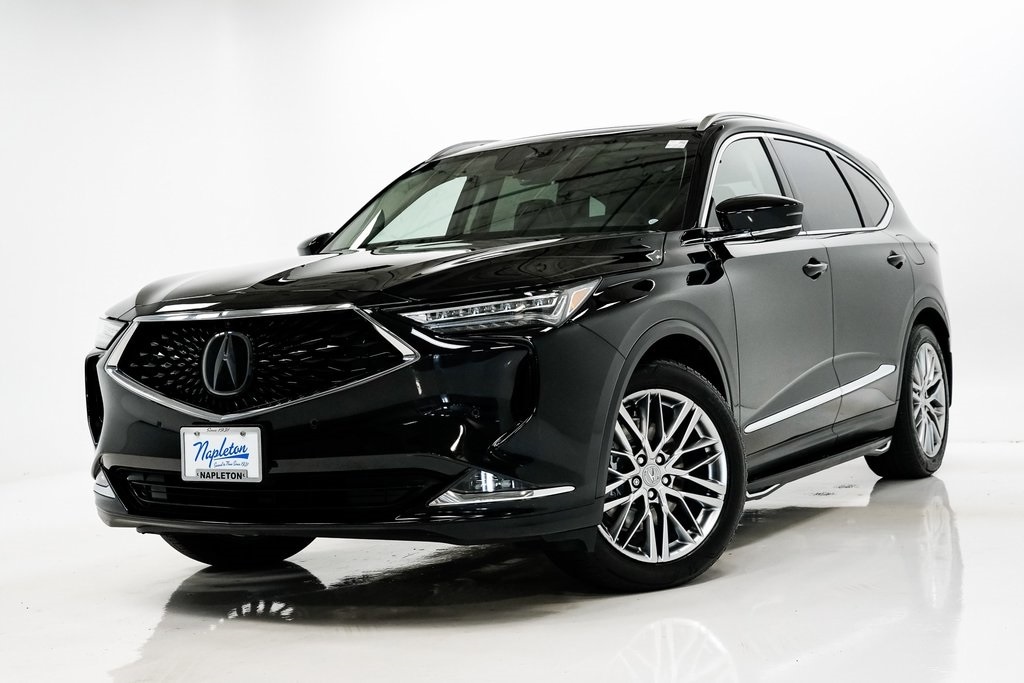 This MDX is well equipped with Precision Certified Certified, Apple CarPlay/Android Auto, Heads-Up Display, Heated & Ventilated Front Sport Seats, Heated steering wheel, Lane departure: Lane Keeping Assist System (LKAS) active, Power Liftgate, Power moonroof, Radio: ELS Studio 3D Premium Audio System, 16 Speakers, 3rd row seats: split-bench, 4-Wheel Disc Brakes, 4.17 Axle Ratio, A/V remote: CabinControl, ABS brakes, Adaptive suspension, Air Conditioning, Alloy wheels, AM/FM radio: SiriusXM, Anti-whiplash front head restraints, Audio memory, Auto High-beam Headlights, Auto tilt-away steering wheel, Auto-dimming Rear-View mirror, Automatic temperature control, Brake assist, Bumpers: body-color, Compass, Delay-off headlights, Driver door bin, Driver vanity mirror, Dual front impact airbags, Dual front side impact airbags, Electronic Stability Control, Emergency communication system: AcuraLink, Four wheel independent suspension, Front anti-roll bar, Front Bucket Seats, Front Center Armrest, Front dual zone A/C, Front fog lights, Front reading lights, Fully automatic headlights, Garage door transmitter: HomeLink, Heated door mirrors, Heated front seats, Heated rear seats, HVAC memory, Illuminated entry, Knee airbag, Leather steering wheel, Low tire pressure warning, Memory seat, Navigation system: Acura Navigation System with 3D View, Occupant sensing airbag, Outside temperature display, Overhead airbag, Overhead console, Panic alarm, Passenger door bin, Passenger vanity mirror, Perforated Premium Milano Leather Trimmed Seats, Power door mirrors, Power driver seat, Power passenger seat, Power steering, Power windows, Premium audio system: Acura/ELS Studio 3D, Radio data system, Rain sensing wipers, Rear air conditioning, Rear anti-roll bar, Rear reading lights, Rear seat center armrest, Rear window defroster, Rear window wiper, Remote keyless entry, Security system, Speed control, Speed-sensing steering, Speed-Sensitive Wipers, Split folding rear seat, Spoiler, Steering wheel memory, Steering wheel mounted audio controls, Tachometer, Telescoping steering wheel, Tilt steering wheel, Traction control, Trip computer, Turn signal indicator mirrors, Variably intermittent wipers, Ventilated front seats, and Wheels: 20" x 9" Aluminum Alloy.