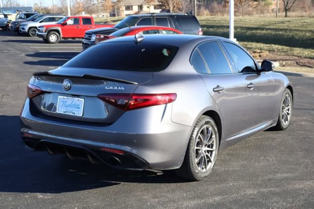 This Giulia is well equipped with Cold Weather Package (Heated Front Seats, Heated Steering Wheel, and Heated Washer Nozzles), 8.8" Nav Radio w/SiriusXM Package (1-Year SiriusXM Radio Service, 8.8" Widescreen Color Display, For More Info, Call 800-643-2112, GPS Navigation, HD Radio, No Satellite Coverage w/AK/HI/PR/VI/GU, Radio: AM/FM/HD Bluetooth w/Nav 8.8, and SiriusXM Satellite Radio), Quick Order Package 22M, 4-Wheel Disc Brakes, 8 Speakers, ABS brakes, Air Conditioning, Alloy wheels, AM/FM radio, Apple CarPlay/Android Auto, Auto-dimming Rear-View mirror, Automatic temperature control, Brake assist, Bumpers: body-color, Calipers Gloss Red w/White Script, Colored Brake Calipers, Compass, Delay-off headlights, Driver door bin, Driver vanity mirror, Dual front impact airbags, Dual front side impact airbags, Electronic Stability Control, Exterior Parking Camera Rear, Four wheel independent suspension, Front anti-roll bar, Front Bucket Seats, Front Center Armrest, Front dual zone A/C, Front reading lights, Fully automatic headlights, Garage door transmitter, Heated door mirrors, High intensity discharge headlights: Bi-Xenon, Illuminated entry, Knee airbag, Leather Seats, Leather steering wheel, Low tire pressure warning, Occupant sensing airbag, Outside temperature display, Overhead airbag, Overhead console, Panic alarm, Passenger door bin, Passenger vanity mirror, Power door mirrors, Power driver seat, Power passenger seat, Power steering, Power windows, Radio data system, Rain sensing wipers, Rear anti-roll bar, Rear fog lights, Rear reading lights, Rear seat center armrest, Rear window defroster, Remote keyless entry, Security system, Speed control, Speed-sensing steering, Speed-Sensitive Wipers, Split folding rear seat, Steering wheel mounted audio controls, Tachometer, Telescoping steering wheel, Tilt steering wheel, Traction control, Trip computer, Turn signal indicator mirrors, Variably intermittent wipers, and Wheels: 17" x 7.5" 10-Spoke Aluminum.