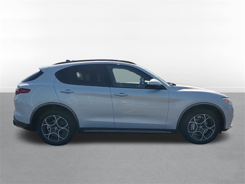 This Stelvio is well equipped with Premium Interior & Sound Package (harman/kardon Premium Audio and Leather Dash & Upper Doors), Quick Order Package 22S Veloce (115V Auxiliary Power Outlet, Aluminum Interior Trim, Aluminum Steering Column Mounted Paddle Shifters, Body Color Appearance Kit, Dark Miron V Scudetto Grille, Gloss Black Window Surround Moldings, Gloss Red Calipers w/White Script, Limited Slip Differential Rear Axle, Power 8-Way Adjustable Driver Seat, Power Adjust 8-Way Front Passenger Seat, Power Adjustable Bolster, Sport Leather Seats, Sport Rear Diffuser, and Wheels: 20" x 8.5" Sport 5-Hole Aluminum), Apple CarPlay/Android Auto, Heated front seats, Heated steering wheel, Navigation System, ParkView Rear Back-Up Camera, Power moonroof, 3.73 Axle Ratio, 4-Wheel Disc Brakes, 8 Speakers, ABS brakes, Air Conditioning, Alloy wheels, AM/FM radio: SiriusXM, Auto High-beam Headlights, Auto-dimming door mirrors, Auto-dimming Rear-View mirror, Automatic temperature control, Brake assist, Bumpers: body-color, Compass, Delay-off headlights, Driver door bin, Driver vanity mirror, Dual front impact airbags, Dual front side impact airbags, Electronic Stability Control, Emergency communication system: SiriusXM Guardian - included trial, Four wheel independent suspension, Front anti-roll bar, Front Bucket Seats, Front Center Armrest, Front dual zone A/C, Front reading lights, Fully automatic headlights, Garage door transmitter, Genuine wood console insert, Genuine wood dashboard insert, Genuine wood door panel insert, Headlight cleaning, Heated door mirrors, Heated rear seats, High intensity discharge headlights: Bi-Xenon, Illuminated entry, Knee airbag, Leather Seats, Leather Shift Knob, Leather steering wheel, Low tire pressure warning, Memory seat, Occupant sensing airbag, Outside temperature display, Overhead airbag, Overhead console, Panic alarm, Passenger door bin, Passenger vanity mirror, Power door mirrors, Power driver seat, Power Liftgate, Power passenger seat, Power steering, Power windows, Radio data system, Radio: AM/FM/HD 8.8" w/Navigation, Rain sensing wipers, Rear anti-roll bar, Rear audio controls, Rear fog lights, Rear reading lights, Rear seat center armrest, Rear window defroster, Rear window wiper, Red Seats, Remote keyless entry, Security system, Speed control, Speed-sensing steering, Speed-Sensitive Wipers, Split folding rear seat, Spoiler, Sport steering wheel, Steering wheel mounted audio controls, Tachometer, Telescoping steering wheel, Tilt steering wheel, Traction control, Trip computer, Turn signal indicator mirrors, and Variably intermittent wipers.