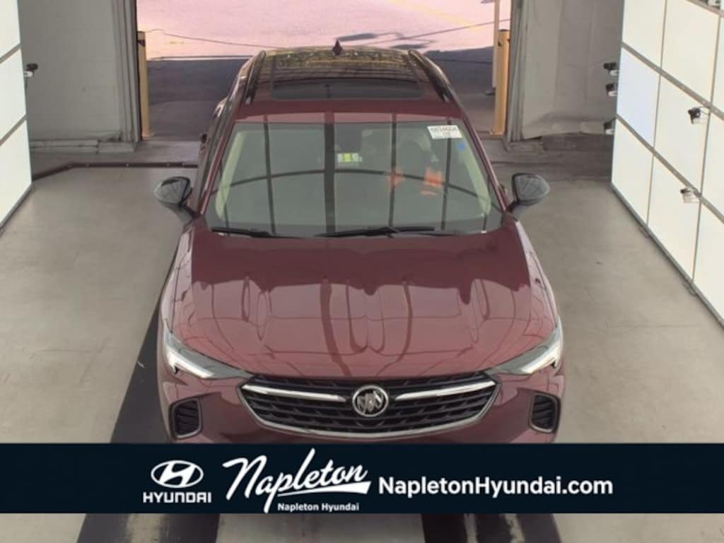 This Envision is well equipped with Preferred Equipment Group 1SL, Sport Touring Package (Black Roof Rails, Body-Color Door Handles, Carpeted Front & Rear Floor Mats, Lower Trim/Wheel Arch Moldings, Rear Cargo Compartment Cover, Sport Alloy Pedals, and Wheels: 20" Aluminum w/Dark Finish), 3.47 Final Drive Axle Ratio, 4-Wheel Disc Brakes, 7 Speakers, 7-Speaker Audio System Feature w/Amplifier, 8-Way Power Driver Seat Adjuster, ABS brakes, Air Conditioning, Alloy wheels, AM/FM radio: SiriusXM, Apple CarPlay/Android Auto, Auto High-beam Headlights, Auto-dimming door mirrors, Auto-dimming Rear-View mirror, Automatic Emergency Braking, Automatic temperature control, Brake assist, Bumpers: body-color, Compass, Delay-off headlights, Deleted 3 Years of OnStar & Connected Services Plan, Driver door bin, Driver vanity mirror, Dual front impact airbags, Dual front side impact airbags, Electronic Stability Control, Emergency communication system: OnStar and Buick connected services capable, Following Distance Indicator, Forward Collision Alert, Four wheel independent suspension, Front anti-roll bar, Front Bin Center Console USB Ports, Front Bucket Seats, Front Center Armrest, Front dual zone A/C, Front Passenger 8-Way Power Seat Adjuster, Front Pedestrian Braking, Front reading lights, Fully automatic headlights, Heated door mirrors, Heated Driver & Front Passenger Seats, Heated front seats, Heated steering wheel, Illuminated entry, IntelliBeam Headlamp Control w/Auto High Beam, Knee airbag, Lane Keep Assist w/Lane Departure Warning, Low tire pressure warning, Memory seat, Not Equipped w/Lane Change & Rear Cross Traffic Alerts, Not Equipped w/Rear Park Assist, Occupant sensing airbag, Outside temperature display, Overhead airbag, Overhead console, Panic alarm, Passenger door bin, Passenger vanity mirror, Perforated Leather-Appointed Seat Trim, Power door mirrors, Power driver seat, Power Liftgate, Power Panoramic Tilt-Sliding Moonroof, Power passenger seat, Power steering, Power windows, Premium audio system: Buick Infotainment System, Radio data system, Radio: Buick Infotainment System AM/FM Stereo, Rear anti-roll bar, Rear reading lights, Rear seat center armrest, Rear window defroster, Rear window wiper, Remote keyless entry, Security system, SiriusXM Radio, Speed control, Split folding rear seat, Spoiler, Steering wheel mounted audio controls, Telescoping steering wheel, Tilt steering wheel, Traction control, Trip computer, USB Charging-Only Ports, Variably intermittent wipers, Wheels: 18" Machined Aluminum w/Light Silver Met, and Wireless Apple CarPlay/Wireless Android Auto.