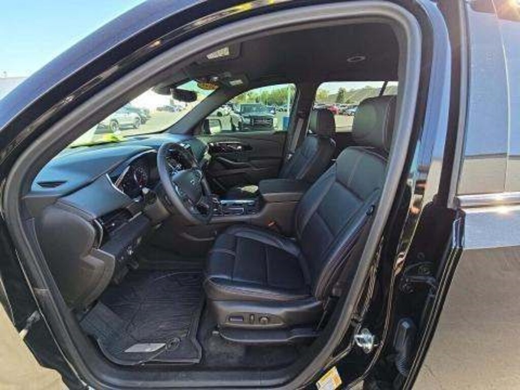 This Traverse is well equipped with Preferred Equipment Group 2LT (Heated Driver & Front Passenger Seats), Trailering Equipment (Heavy-Duty Cooling System, Hitch Guidance w/Hitch View, and Trailering Assist Guidelines), Floor Liner Package (LPO) (1st & 2nd Row All-Weather Floor Liner (LPO), 3rd Row All-Weather Floor Liner (LPO), and Integrated Cargo Liner (LPO)), 6-Way Power Front Passenger Seat, 8-Way Power Driver Seat Adjuster, Apple CarPlay/Android Auto, Bose Premium 10-Speaker Audio System Feature, Garage door transmitter, Heated steering wheel, Leather steering wheel, Navigation System, Wheels: 20" Dark Aluminum, 10 Speakers, 3.49 Axle Ratio, 3rd row seats: split-bench, 4-Wheel Disc Brakes, ABS brakes, Air Conditioning, Alloy wheels, AM/FM radio: SiriusXM with 360L, Auto High-beam Headlights, Auto-dimming Rear-View mirror, Automatic temperature control, Brake assist, Bumpers: body-color, Compass, Custom Molded Front & Rear Splash Guards (LPO), Delay-off headlights, Driver door bin, Driver vanity mirror, Dual front impact airbags, Dual front side impact airbags, Electronic Stability Control, Emergency communication system, Exterior Parking Camera Rear, Four wheel independent suspension, Front anti-roll bar, Front Bucket Seats, Front Center Armrest, Front dual zone A/C, Front Passenger 2-Way Power Lumbar, Front reading lights, Fully automatic headlights, Heated door mirrors, Heated front seats, Illuminated entry, Low tire pressure warning, Not Equipped w/Rear Park Assist (060), Occupant sensing airbag, Outside temperature display, Overhead airbag, Overhead console, Panic alarm, Passenger door bin, Passenger vanity mirror, Perforated Leather-Appointed Seat Trim, Power door mirrors, Power Driver Lumbar Control, Power driver seat, Power Liftgate, Power passenger seat, Power steering, Power windows, Premium audio system: Chevrolet Infotainment 3 Plus, Radio data system, Radio: Chevrolet Infotainment 3 Plus System w/Navi, Rear air conditioning, Rear anti-roll bar, Rear reading lights, Rear window defroster, Rear window wiper, Remote keyless entry, Security system, SiriusXM w/360L, Speed control, Speed-sensing steering, Spoiler, Steering wheel mounted audio controls, Tachometer, Telescoping steering wheel, Tilt steering wheel, Traction control, Trip computer, Turn signal indicator mirrors, Variably intermittent wipers, and Voltmeter.