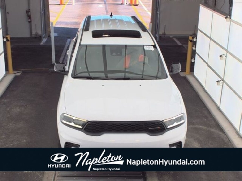 This Durango is well equipped with Quick Order Package 2BG GT Plus (1-Year Trial (Registration Required), 10.1" Touchscreen Display, 115V Auxiliary Power Outlet, 180 Amp Alternator, 4G LTE Wi-Fi Hot Spot, 7 & 4 Pin Wiring Harness, Adaptive Cruise Control w/Stop, Apple CarPlay, Auto-Dimming Exterior Driver Mirror, Black Roof Rails, Class IV Receiver Hitch, Connected Travel & Traffic Services, Disassociated Touchscreen Display, Dual Remote USB Port - Charge Only, Exterior Mirrors w/Heating Element, Exterior Mirrors w/Memory, Exterior Mirrors w/Supplemental Signals, Floor Console w/Leather Armrest, Full Speed Forward Collision Warning Plus, Gloss Black Exterior Mirrors, Google Android Auto, GPS Antenna Input, GPS Navigation, HD Radio, Heated Second Row Seats, Heavy-Duty Engine Cooling, Integrated Center Stack Radio, Integrated Roof Rail Crossbars, Integrated Voice Command w/Bluetooth, Leather Trimmed Bucket Seats, Leather Wrapped Door Panels, LED Auxiliary Low Beam & Turn Signal, Power 6x9 Multi-Function Foldaway Mirrors, Power 8-Way Driver Memory 8-Way Passenger Seats, Power Driver/Passenger 4-Way Lumbar Adjust, Power Sunroof, Power Tilt & Telescopic Steering Column, Premium LED Fog Lamps, Radio: Uconnect 5 Nav w/10.1" Display, Radio/Driver Seat/Mirrors Memory, Rear Load Leveling Suspension, Red Accent Stitching, SiriusXM Guardian - Included Trial (B), SiriusXM w/360L, Trailer Brake Control, USB Host Flip, and Ventilated Front Seats), AWD, 3.45 Rear Axle Ratio, 3rd row seats: split-bench, 4-Wheel Disc Brakes, 6 Speakers, ABS brakes, Air Conditioning, Alloy wheels, AM/FM radio: SiriusXM, Apple CarPlay/Android Auto, Auto-dimming Rear-View mirror, Automatic temperature control, Brake assist, Bumpers: body-color, Cloth Bucket Seats w/Shift Insert, Compass, Delay-off headlights, Driver door bin, Driver vanity mirror, Dual front impact airbags, Dual front side impact airbags, Electronic Stability Control, Four wheel independent suspension, Front anti-roll bar, Front Bucket Seats, Front Center Armrest w/Storage, Front dual zone A/C, Front License Plate Bracket, Front reading lights, Fully automatic headlights, Garage door transmitter, Heated door mirrors, Heated front seats, Heated steering wheel, Illuminated entry, Knee airbag, Leather steering wheel, Low tire pressure warning, Manufacturer's Statement of Origin, Occupant sensing airbag, Outside temperature display, Overhead airbag, Overhead console, Panic alarm, ParkView Rear Back-Up Camera, Passenger door bin, Passenger vanity mirror, Power door mirrors, Power driver seat, Power Liftgate, Power steering, Power windows, Radio data system, Radio: Uconnect 4 w/8.4" Display, Rear air conditioning, Rear anti-roll bar, Rear reading lights, Rear seat center armrest, Rear window defroster, Rear window wiper, Remote keyless entry, SiriusXM Radio Service, SiriusXM Satellite Radio, Speed control, Speed-sensing steering, Speed-Sensitive Wipers, Split folding rear seat, Spoiler, Sport steering wheel, Steering wheel mounted audio controls, Tachometer, Telescoping steering wheel, Tilt steering wheel, Traction control, Trip computer, Variably intermittent wipers, Voltmeter, and Wheels: 20" x 8.0" Fine Silver.