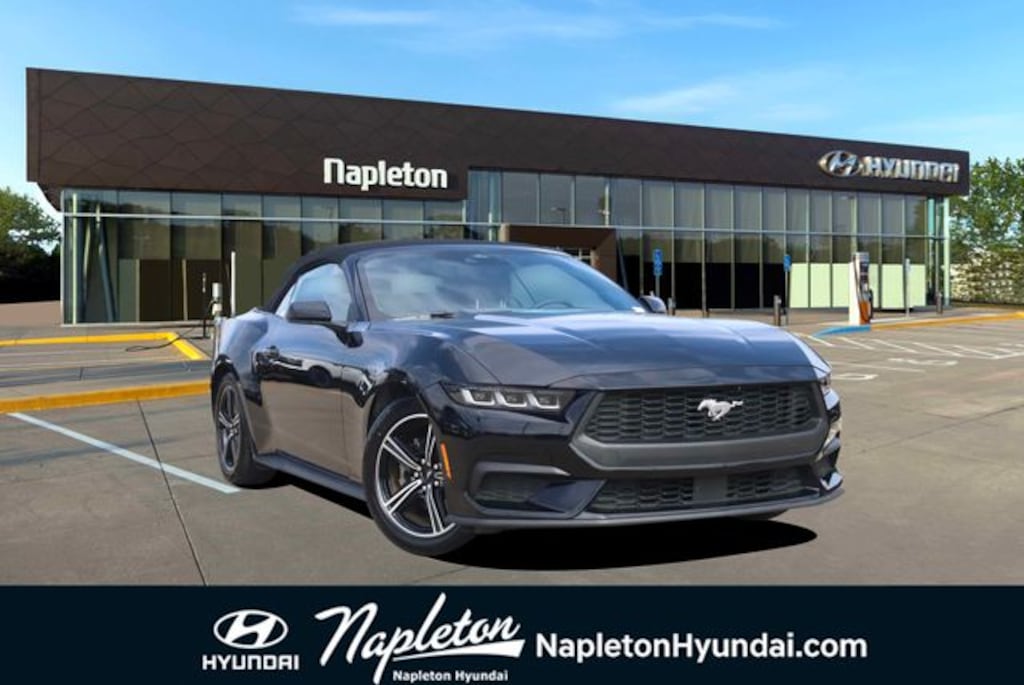 CARFAX One-Owner. Shadow Black 2024 Ford Mustang 2D Convertible EcoBoost EcoBoost 2.3L I4 GTDi DOHC Turbocharged VCT RWD Clean CARFAX.