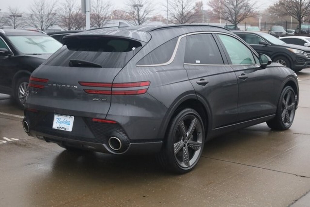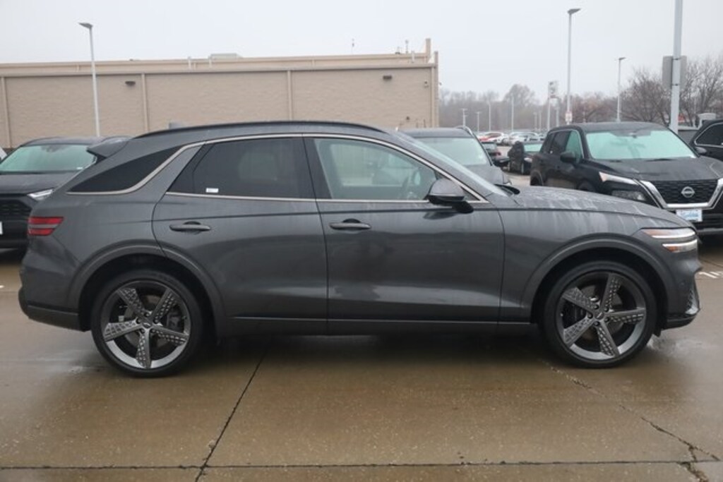 This GV70 is well equipped with Sport Advanced Package, Sport Prestige Package (Nappa Leather Seating Surfaces w/Suede Inserts, Wheels: 21" Sport Dark Sputtering Alloy, 12.3" 3D Digital Cluster, 3-Zone Climate, Acoustic Rear Door Glass, Carbon Fiber Trim, Electronic Limited-Slip Differential, Heads-Up Display, Heated 2nd Row Seats, Manual Rear Side Sunshades, and Option Group 06), Heated & Ventilated Front Bucket Seats, Heated door mirrors, Navigation System, Power Liftgate, Power moonroof, 3.909 Axle Ratio, 4-Wheel Disc Brakes, 9 Speakers, ABS brakes, Adaptive suspension, Air Conditioning, AM/FM radio: SiriusXM, Android Auto & Apple CarPlay, Anti-whiplash front head restraints, Auto High-beam Headlights, Auto-dimming door mirrors, Auto-dimming Rear-View mirror, Automatic temperature control, Brake assist, Bumpers: body-color, Delay-off headlights, Driver door bin, Driver vanity mirror, Dual front impact airbags, Dual front side impact airbags, Electronic Stability Control, Emergency communication system, Exterior Parking Camera Rear, Four wheel independent suspension, Front anti-roll bar, Front Bucket Seats, Front Center Armrest w/Storage, Front dual zone A/C, Front reading lights, Fully automatic headlights, Garage door transmitter: HomeLink, Heated front seats, Illuminated entry, Knee airbag, Leather Seating Surfaces w/Mesh Insert, Low tire pressure warning, Memory seat, Occupant sensing airbag, Outside temperature display, Overhead airbag, Overhead console, Panic alarm, Passenger door bin, Passenger vanity mirror, Power door mirrors, Power driver seat, Power passenger seat, Power steering, Power windows, Radio: AM/FM/SiriusXM/HD Premium Audio System, Rain sensing wipers, Rear anti-roll bar, Rear Parking Sensors, Rear reading lights, Rear seat center armrest, Rear window defroster, Rear window wiper, Remote keyless entry, Security system, Speed control, Speed-sensing steering, Speed-Sensitive Wipers, Split folding rear seat, Spoiler, Steering wheel memory, Steering wheel mounted audio controls, Tachometer, Telescoping steering wheel, Tilt steering wheel, Traction control, Trip computer, Turn signal indicator mirrors, Variably intermittent wipers, and Ventilated front seats.