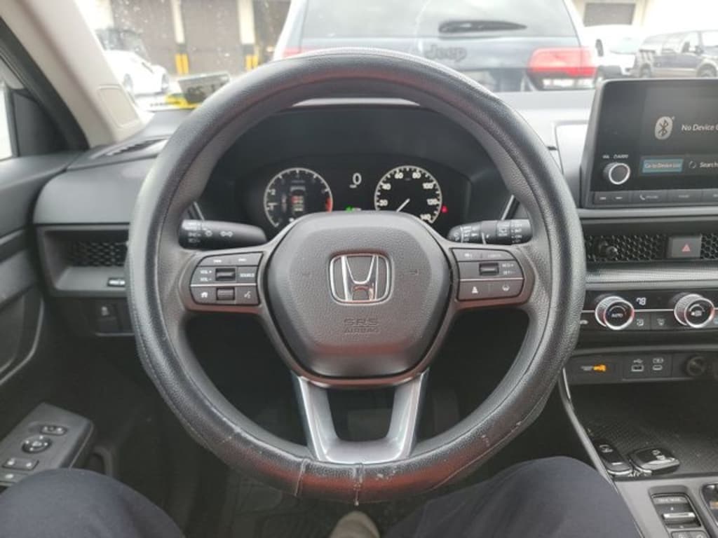 This CR-V is well equipped with AWD, 4-Wheel Disc Brakes, 6 Speakers, ABS brakes, Adaptive Cruise Control: Adaptive Cruise Control (ACC) with Low-Speed Follow, Air Conditioning, Alloy wheels, Apple CarPlay/Android Auto, Auto High-beam Headlights, Automatic temperature control, Blind Spot Information (BSI) System warning, Brake assist, Bumpers: body-color, Cloth Seat Trim, Compass, Delay-off headlights, Driver door bin, Driver vanity mirror, Dual front impact airbags, Dual front side impact airbags, Electronic Stability Control, Exterior Parking Camera Rear, Four wheel independent suspension, Front anti-roll bar, Front Bucket Seats, Front Center Armrest, Front dual zone A/C, Front reading lights, Fully automatic headlights, Heated door mirrors, Heated Front Bucket Seats, Heated front seats, Illuminated entry, Knee airbag, Low tire pressure warning, Occupant sensing airbag, Outside temperature display, Overhead airbag, Overhead console, Panic alarm, Passenger door bin, Passenger vanity mirror, Power door mirrors, Power driver seat, Power moonroof, Power steering, Power windows, Radio data system, Radio: 240-Watt AM/FM Audio System, Rear anti-roll bar, Rear reading lights, Rear seat center armrest, Rear side impact airbag, Rear window defroster, Rear window wiper, Remote keyless entry, Security system, Speed control, Speed-sensing steering, Speed-Sensitive Wipers, Split folding rear seat, Spoiler, Steering wheel mounted audio controls, Tachometer, Telescoping steering wheel, Tilt steering wheel, Traction control, Trip computer, Turn signal indicator mirrors, Variably intermittent wipers, and Wheels: 18" Sparkle Silver Metallic.