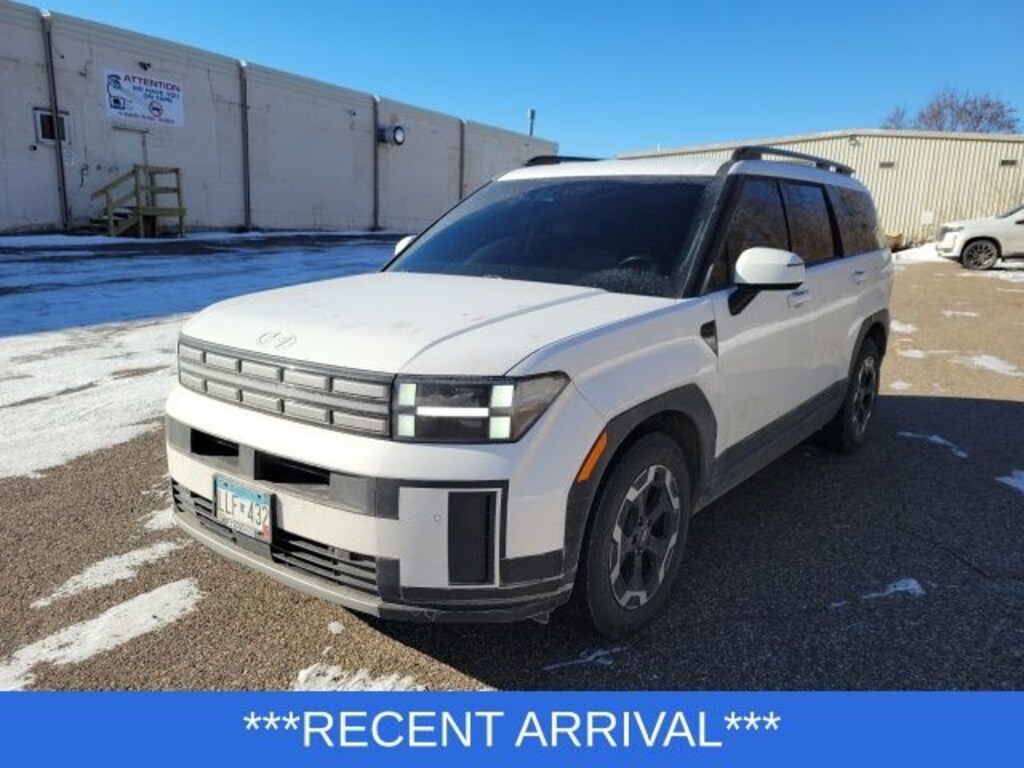 This Santa Fe is well equipped with Option Group 01, 3rd row seats: bench, Apple CarPlay & Android Auto, H-Tex Leatherette Seat Trim, Heated Front Bucket Seats, Power Liftgate, 18" x 7.5J Alloy Wheels, 4-Wheel Disc Brakes, 6 Speakers, ABS brakes, Air Conditioning, Alloy wheels, AM/FM radio: SiriusXM, Auto High-beam Headlights, Automatic temperature control, Axle Ratio: 3.316, Brake assist, Bumpers: body-color, Cargo Net, Carpeted Floor Mats, Delay-off headlights, Driver door bin, Driver vanity mirror, Dual front impact airbags, Dual front side impact airbags, Electronic Stability Control, Emergency communication system, Exterior Parking Camera Rear, Four wheel independent suspension, Front anti-roll bar, Front Bucket Seats, Front Center Armrest, Front dual zone A/C, Front reading lights, Fully automatic headlights, Heated door mirrors, Heated front seats, Illuminated entry, Knee airbag, Leather steering wheel, Low tire pressure warning, Occupant sensing airbag, Outside temperature display, Overhead airbag, Overhead console, Panic alarm, Passenger door bin, Passenger vanity mirror, Power door mirrors, Power driver seat, Power steering, Power windows, Radio: AM/FM/HD Display Audio, Rear anti-roll bar, Rear seat center armrest, Rear side impact airbag, Rear window defroster, Rear window wiper, Remote keyless entry, Security system, Speed control, Speed-sensing steering, Split folding rear seat, Spoiler, Steering wheel mounted audio controls, Tachometer, Telescoping steering wheel, Tilt steering wheel, Traction control, Trip computer, Turn signal indicator mirrors, and Variably intermittent wipers.