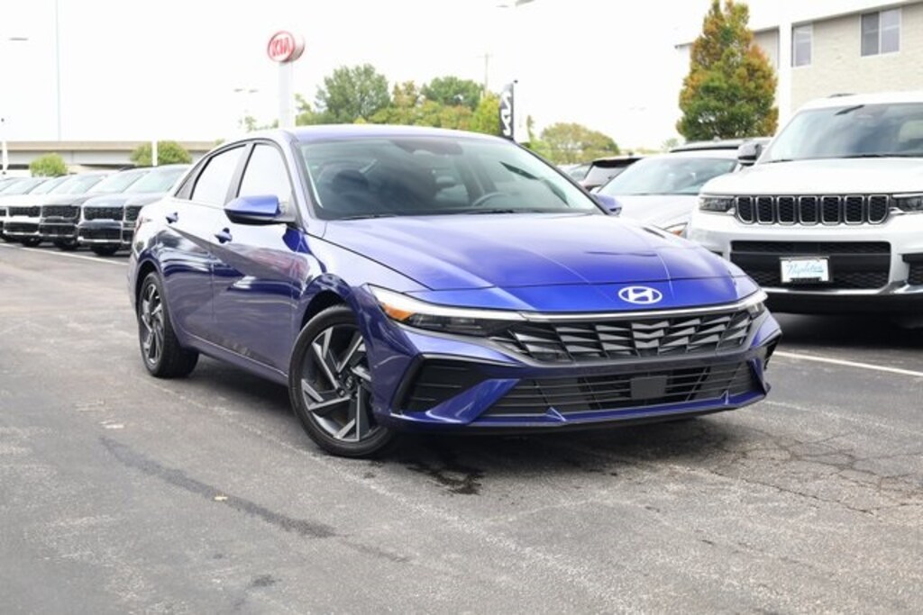 This Elantra is well equipped with Option Group 01, 17" x 7.0J Alloy Wheels, 4-Wheel Disc Brakes, 6 Speakers, ABS brakes, Air Conditioning, Alloy wheels, AM/FM radio: SiriusXM, Apple CarPlay & Android Auto, Auto High-beam Headlights, Automatic temperature control, Brake assist, Bumpers: body-color, Cargo Net, Carpeted Floor Mats, Delay-off headlights, Driver door bin, Driver vanity mirror, Dual front impact airbags, Dual front side impact airbags, Electronic Stability Control, Emergency communication system: Bluelink+, Exterior Parking Camera Rear, First Aid Kit, Front anti-roll bar, Front Bucket Seats, Front Center Armrest, Front dual zone A/C, Front reading lights, Front wheel independent suspension, Fully automatic headlights, Heated door mirrors, Heated Front Bucket Seats, Heated front seats, Illuminated entry, Leather Shift Knob, Leather steering wheel, Low tire pressure warning, Mudguards, Navigation System, Occupant sensing airbag, Outside temperature display, Overhead airbag, Overhead console, Panic alarm, Passenger door bin, Passenger vanity mirror, Power door mirrors, Power moonroof, Power steering, Power windows, Premium Cloth Seat Trim, Radio: AM/FM/HD/SiriusXM Display Audio, Rear seat center armrest, Rear side impact airbag, Rear window defroster, Remote keyless entry, Reversible Cargo Tray, Security system, Speed control, Speed-sensing steering, Split folding rear seat, Steering wheel mounted audio controls, Tachometer, Telescoping steering wheel, Tilt steering wheel, Traction control, Trip computer, and Variably intermittent wipers.