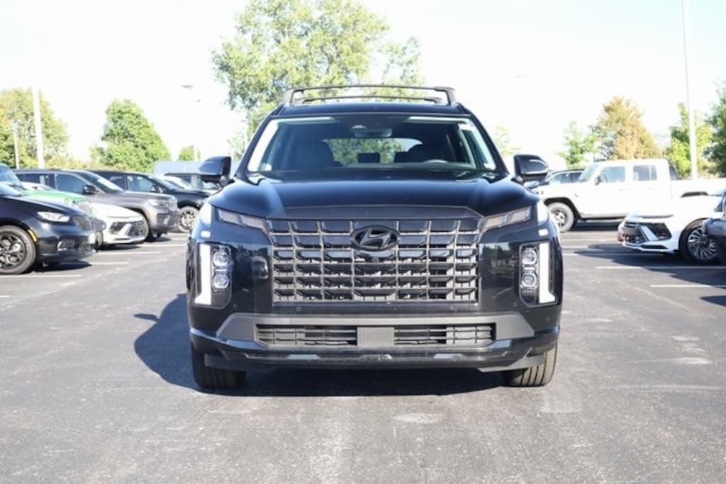 This Palisade is well equipped with Option Group 01, 3rd row seats: split-bench, 4-Wheel Disc Brakes, 6 Speakers, ABS brakes, Air Conditioning, All-Season Fitted Liners, Alloy wheels, AM/FM radio: SiriusXM, Apple CarPlay & Android Auto, Auto High-beam Headlights, Auto-dimming door mirrors, Auto-dimming Rear-View mirror, Auto-leveling suspension, Automatic temperature control, Brake assist, Bumpers: body-color, Cargo Net, Cargo Tray, Carpeted Floor Mats, Delay-off headlights, Driver door bin, Driver vanity mirror, Dual front impact airbags, Dual front side impact airbags, Electronic Stability Control, Emergency communication system, Exterior Parking Camera Rear, First Aid Kit, Four wheel independent suspension, Front anti-roll bar, Front Bucket Seats, Front Center Armrest, Front dual zone A/C, Front reading lights, Fully automatic headlights, H-Tex Leatherette Seat Trim, Heated door mirrors, Heated Front Bucket Seats, Heated front seats, Illuminated entry, Knee airbag, Leather steering wheel, Low tire pressure warning, Navigation System, Occupant sensing airbag, Outside temperature display, Overhead airbag, Overhead console, Panic alarm, Passenger door bin, Passenger vanity mirror, Power door mirrors, Power driver seat, Power Liftgate, Power moonroof, Power passenger seat, Power steering, Power windows, Radio data system, Radio: AM/FM/MP3 Audio System, Rear air conditioning, Rear anti-roll bar, Rear audio controls, Rear reading lights, Rear side impact airbag, Rear window defroster, Rear window wiper, Reclining 3rd row seat, Remote keyless entry, Roof rack, Security system, Speed control, Speed-sensing steering, Split folding rear seat, Spoiler, Steering wheel mounted audio controls, Tachometer, Telescoping steering wheel, Tilt steering wheel, Traction control, Trip computer, Turn signal indicator mirrors, Variably intermittent wipers, Wheel Locks, and Wheels: 20" x 7.5J Dark Alloy w/Rugged Styling.