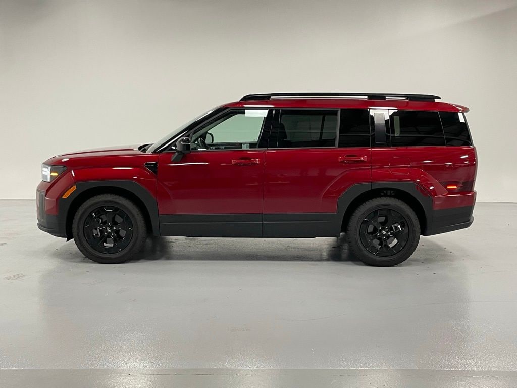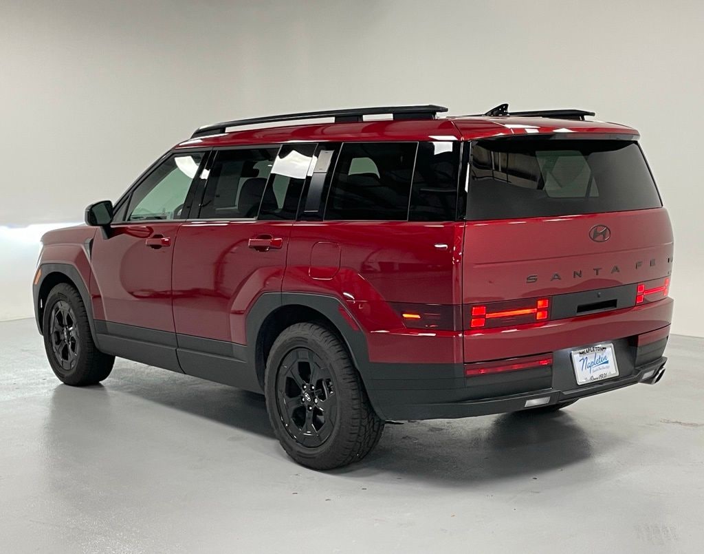 This Santa Fe is well equipped with Option Group 01, AWD, Black Artificial Leather, 3rd row seats: bench, 4-Wheel Disc Brakes, 6 Speakers, ABS brakes, Air Conditioning, Alloy wheels, AM/FM radio: SiriusXM, Apple CarPlay & Android Auto, Auto High-beam Headlights, Automatic temperature control, Brake assist, Bumpers: body-color, Cargo Blocks, Cargo Tray, Carpeted Floor Mats, Delay-off headlights, Driver door bin, Driver vanity mirror, Dual front impact airbags, Dual front side impact airbags, Electronic Stability Control, Emergency communication system, Exterior Parking Camera Rear, First Aid Kit, Four wheel independent suspension, Front anti-roll bar, Front Bucket Seats, Front Center Armrest, Front dual zone A/C, Front reading lights, Fully automatic headlights, H-Tex Leatherette Seat Trim, Heated door mirrors, Heated Front Bucket Seats, Heated front seats, Illuminated entry, Knee airbag, Leather steering wheel, Low tire pressure warning, Navigation System, Occupant sensing airbag, Outside temperature display, Overhead airbag, Overhead console, Panic alarm, Passenger door bin, Passenger vanity mirror, Power door mirrors, Power driver seat, Power Liftgate, Power moonroof, Power steering, Power windows, Radio: AM/FM/HD Display Audio, Rear anti-roll bar, Rear seat center armrest, Rear side impact airbag, Rear window defroster, Rear window wiper, Remote keyless entry, Security system, Speed control, Speed-sensing steering, Split folding rear seat, Spoiler, Steering wheel mounted audio controls, Tachometer, Telescoping steering wheel, Tilt steering wheel, Traction control, Trip computer, Turn signal indicator mirrors, Variably intermittent wipers, Wheel Locks, and Wheels: 18" x 7.5J Dark Alloy.