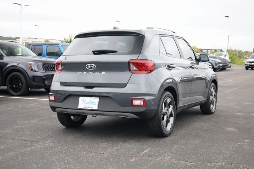 This Venue is well equipped with Option Group 01, 4-Wheel Disc Brakes, 6 Speakers, 6.5J x 17" Alloy Wheels, ABS brakes, Air Conditioning, Alloy wheels, AM/FM radio, Apple CarPlay & Android Auto, Auto High-beam Headlights, Automatic temperature control, Brake assist, Bumpers: body-color, Cargo Net, Carpeted Floor Mats, Cloth Seat Trim, Cross Rails, Delay-off headlights, Driver door bin, Driver vanity mirror, Dual front impact airbags, Dual front side impact airbags, Electronic Stability Control, First Aid Kit, Front anti-roll bar, Front Bucket Seats, Front Center Armrest, Front reading lights, Front wheel independent suspension, Fully automatic headlights, Illuminated entry, Leather Shift Knob, Leather steering wheel, Low tire pressure warning, Occupant sensing airbag, Outside temperature display, Overhead airbag, Overhead console, Panic alarm, Passenger door bin, Passenger vanity mirror, Power door mirrors, Power moonroof, Power steering, Power windows, Radio: AM/FM/HD Display Audio, Rear Seat Cup Holder, Rear window defroster, Rear window wiper, Remote keyless entry, Security system, Speed control, Speed-sensing steering, Split folding rear seat, Spoiler, Steering wheel mounted audio controls, Tachometer, Telescoping steering wheel, Tilt steering wheel, Traction control, Trip computer, and Variably intermittent wipers.