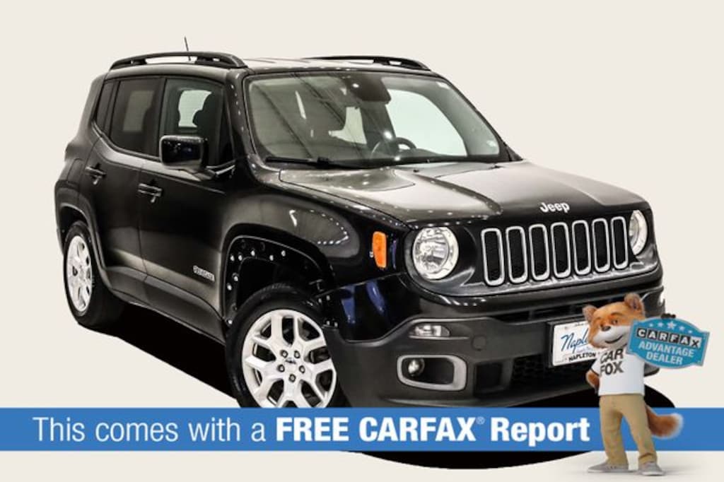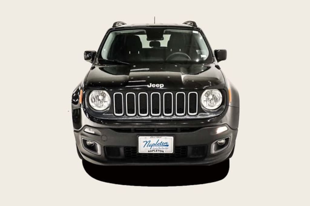 This Renegade is well equipped with Quick Order Package 27J, 16" x 6.5" Aluminum Wheels, 17" x 7.0" Aluminum Wheels, 4-Wheel Disc Brakes, 6 Speakers, ABS brakes, Air Conditioning, Alloy wheels, AM/FM radio: SiriusXM, Anti-whiplash front head restraints, Brake assist, Cloth Low-Back Bucket Seats, Compass, Delay-off headlights, Driver door bin, Driver vanity mirror, Dual front impact airbags, Dual front side impact airbags, Electronic Stability Control, Four wheel independent suspension, Front anti-roll bar, Front Bucket Seats, Front Center Armrest, Front fog lights, Front reading lights, Fully automatic headlights, Heated door mirrors, Illuminated entry, Knee airbag, Leather steering wheel, Low tire pressure warning, Normal Duty Suspension, Occupant sensing airbag, Outside temperature display, Overhead airbag, Overhead console, Panic alarm, ParkView Rear Back-Up Camera, Passenger door bin, Passenger vanity mirror, Power door mirrors, Power steering, Power windows, Radio data system, Radio: Uconnect 3 w/5" Display, Rear anti-roll bar, Rear window defroster, Rear window wiper, Remote keyless entry, Roof rack: rails only, Speed control, Split folding rear seat, Spoiler, Steering wheel mounted audio controls, Tachometer, Telescoping steering wheel, Tilt steering wheel, Traction control, Trip computer, Variably intermittent wipers, and Voltmeter.