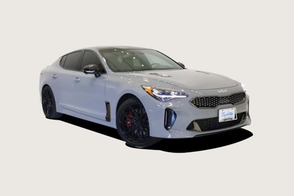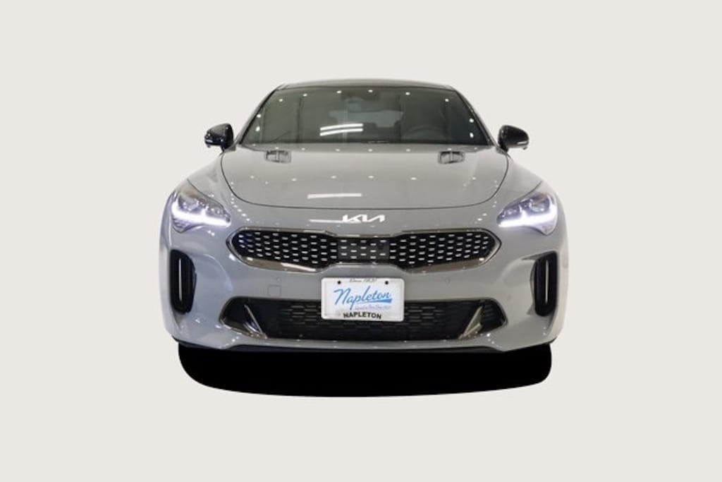 This Stinger is well equipped with Red Interior Color Package (Red Leather Seat Trim), 15 Speakers, 4-Wheel Disc Brakes, ABS brakes, Adaptive suspension, Air Conditioning, Alloy wheels, AM/FM radio: SiriusXM, Anti-whiplash front head restraints, Apple CarPlay & Android Auto, Auto High-beam Headlights, Auto tilt-away steering wheel, Auto-dimming door mirrors, Auto-dimming Rear-View mirror, Automatic temperature control, Brake assist, Bumpers: body-color, Compass, Delay-off headlights, Driver door bin, Driver vanity mirror, Dual front impact airbags, Dual front side impact airbags, Electronic Stability Control, Emergency communication system, Four wheel independent suspension, Front anti-roll bar, Front Bucket Seats, Front Center Armrest, Front dual zone A/C, Front reading lights, Fully automatic headlights, Garage door transmitter: HomeLink, harman/kardon® Speakers, Heads-Up Display, Heated & Ventilated Front Bucket Seats, Heated door mirrors, Heated front seats, Heated rear seats, Heated steering wheel, Illuminated entry, Knee airbag, Low tire pressure warning, Memory seat, Nappa Leather Seat Trim, Navigation System, Occupant sensing airbag, Outside temperature display, Overhead airbag, Overhead console, Panic alarm, Passenger door bin, Passenger vanity mirror, Power door mirrors, Power driver seat, Power Liftgate, Power moonroof, Power passenger seat, Power steering, Power windows, Radio: harmon/kardon AM/FM/MP3/HD Audio System, Rain sensing wipers, Rear air conditioning, Rear anti-roll bar, Rear reading lights, Rear seat center armrest, Rear window defroster, Remote keyless entry, Security system, Smart Key w/ Push Button and Remote Start, Speed control, Speed-sensing steering, Speed-Sensitive Wipers, Split folding rear seat, Sport steering wheel, Steering wheel memory, Steering wheel mounted audio controls, Tachometer, Telescoping steering wheel, Tilt steering wheel, Traction control, Trip computer, Turn signal indicator mirrors, Variably intermittent wipers, Ventilated front seats, and Wheels: 8.0J x 19 Front/8.5J x 19 Rear Spire Alloy.