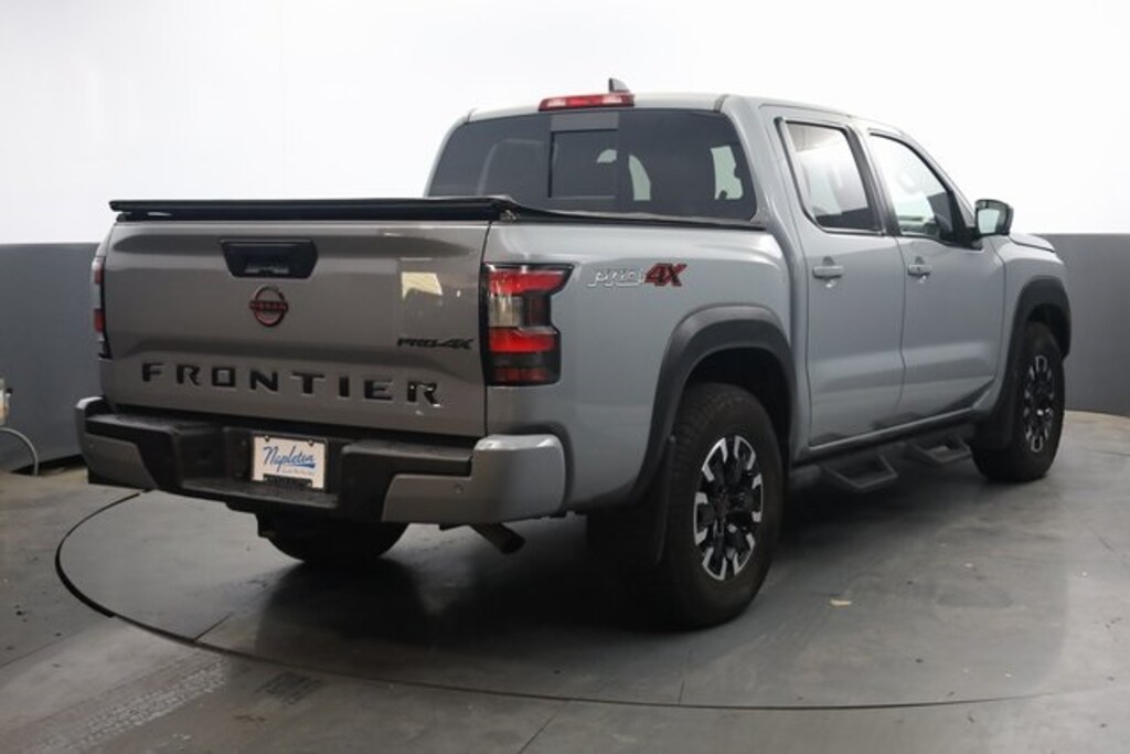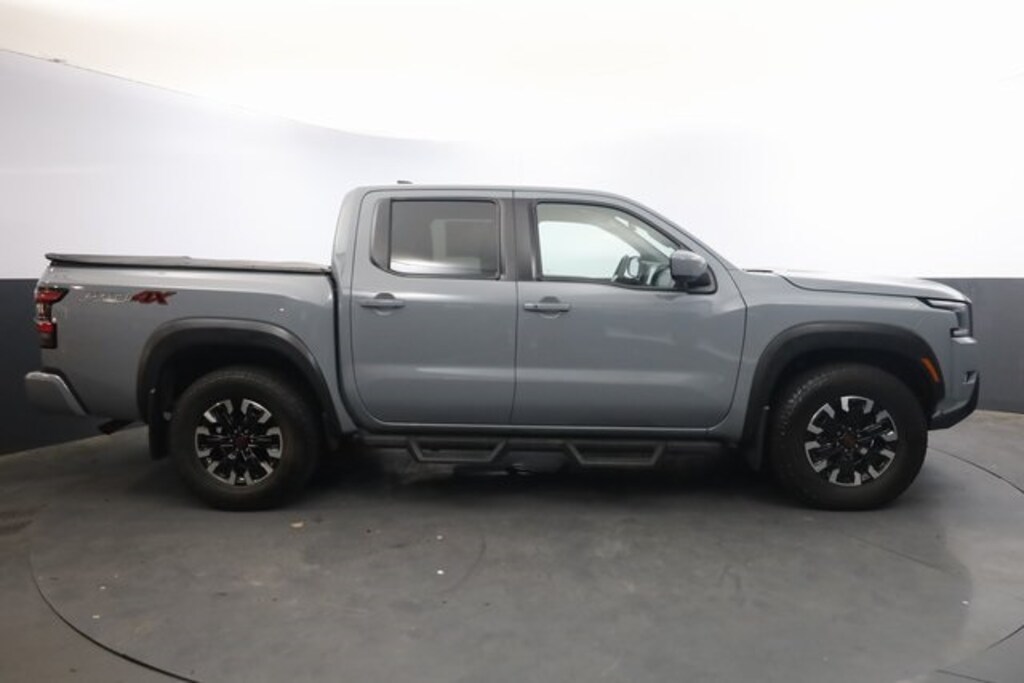 This Frontier is well equipped with Off-Road Protection Package, PRO Convenience Package (Heated Steering Wheel, Intelligent Around View Monitor (I-AVM), and Wireless Charging For Personal Devices), Tow Package: Hitch, Tow Harness, 4WD, 17" Alloy Wheels, 3.692 Axle Ratio, 4-Wheel Disc Brakes, 6 Speakers, ABS brakes, Air Conditioning, Alloy wheels, AM/FM radio: SiriusXM, Anti-whiplash front head restraints, Automatic temperature control, Brake assist, Bumpers: body-color, Delay-off headlights, Driver door bin, Driver vanity mirror, Dual front impact airbags, Dual front side impact airbags, Electronic Stability Control, Electronic Tailgate Lock, Emergency communication system: NissanConnect Services, Front anti-roll bar, Front Bucket Seats, Front Center Armrest, Front dual zone A/C, Front fog lights, Front reading lights, Front wheel independent suspension, Fully automatic headlights, Illuminated entry, Knee airbag, Leather Shift Knob, Low tire pressure warning, Navigation system: Nissan Navigation with Voice Recognition, Occupant sensing airbag, Off-Road Style Step Rails, Overhead airbag, Overhead console, Panic alarm, Passenger door bin, Passenger vanity mirror, Power door mirrors, Power driver seat, Power steering, Power windows, PRO Embroidered Premium Cloth Seat Trim, PRO-4X Carpeted Floor Mats, PRO-4X Mud Flaps, Radio data system, Radio: SXM/AM/FM/AUX/USB Audio System w/6 Speakers, Rear anti-roll bar, Rear seat center armrest, Rear step bumper, Remote keyless entry, Security system, Speed control, Speed-sensing steering, Split folding rear seat, Steering wheel mounted audio controls, Tachometer, Tilt steering wheel, Traction control, Trip computer, Variably intermittent wipers, and Voltmeter.